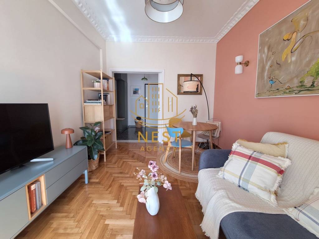In the heart of Kato Ilisia, an elegant 50 sq m apartment is available for sale, fully renovated in 2025 and ready to move in. It is located on the 3rd floor of a 5-storey apartment building and combines timeless aesthetics with modern amenities. It consists of 1 bedroom with fitted wardrobes, a bright living room, a kitchen fully equipped with electrical appliances and a spacious bathroom. It is sold fully furnished and equipped with all the necessary electrical appliances, offering a ready-made solution for residence or investment. It is 700 meters from a metro station. The apartment has wooden and mosaic floors, aluminum frames with double glazing, screens, awnings, A/C, security door and video intercom. The heating is central with natural gas, while the view of the urban landscape enhances the sense of brightness and comfort. Access is via elevator. An apartment with character, fully equipped and ready to move in or exploit. Contact us for more information or to schedule a visit. *The location on the map does not indicate the actual address but is close to it.