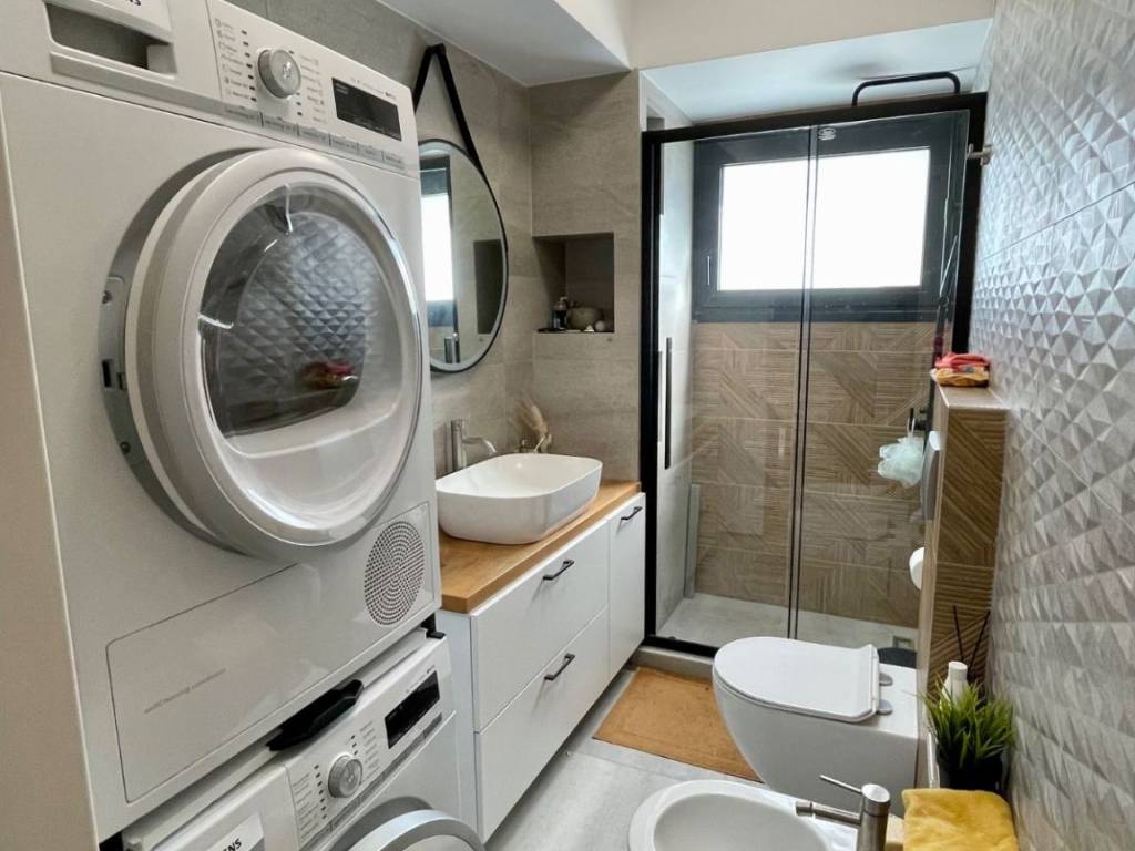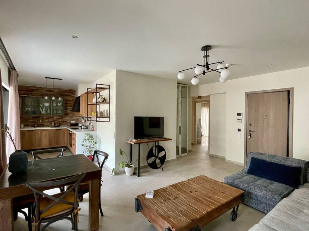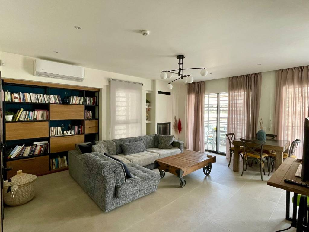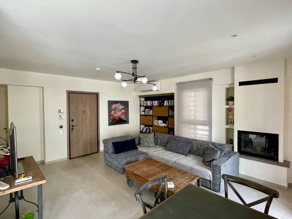 Apartment for sale with high-quality fittings and low operating costs. The property features wardrobes in all bedrooms, as well as an additional wardrobe in the living room used as a coat and shoe storage unit. The sale also includes a living room bookcase of excellent craftsmanship, made of solid wood and metal. The kitchen is a branded Italian Scavolini kitchen, and the apartment is equipped with two air-conditioning units (living room and master bedroom). The fireplace has been used only twice. The floors are A-grade, with tiles in the living room and bathrooms and laminate flooring in the bedrooms. The apartment building is very well insulated, resulting in low heating costs. The rooftop is equipped with a photovoltaic system that reduces the cost of common electricity expenses. The elevator is manufactured by KONE. The parking space includes electrical pre-installation for an electric vehicle charger, and the storage room measures 9 sq.m. The apartment is owner-occupied, in excellent condition with no wear, and can be sold following a reasonable period to allow the owners to relocate. For the indication of the property, you can contact us on tel. and after consultation, they can only be done on weekends. Real estate agents are kindly requested not to contact us.