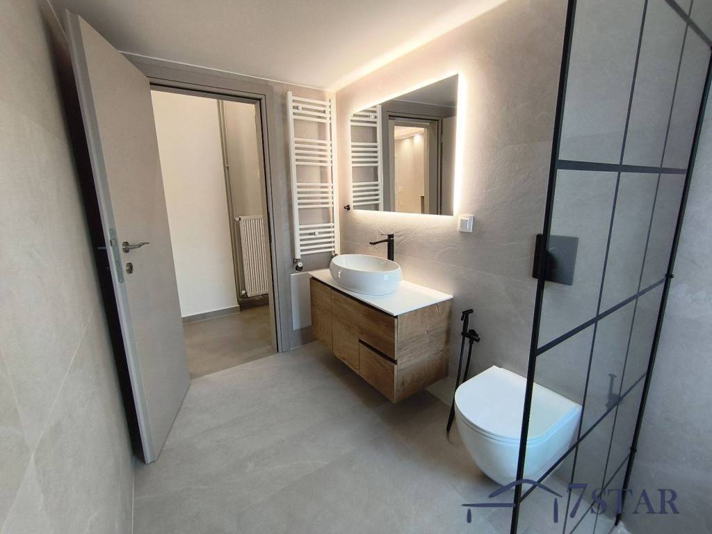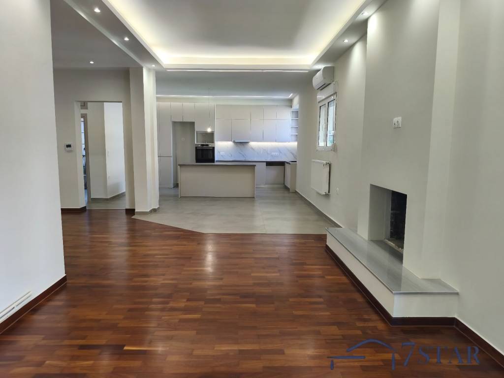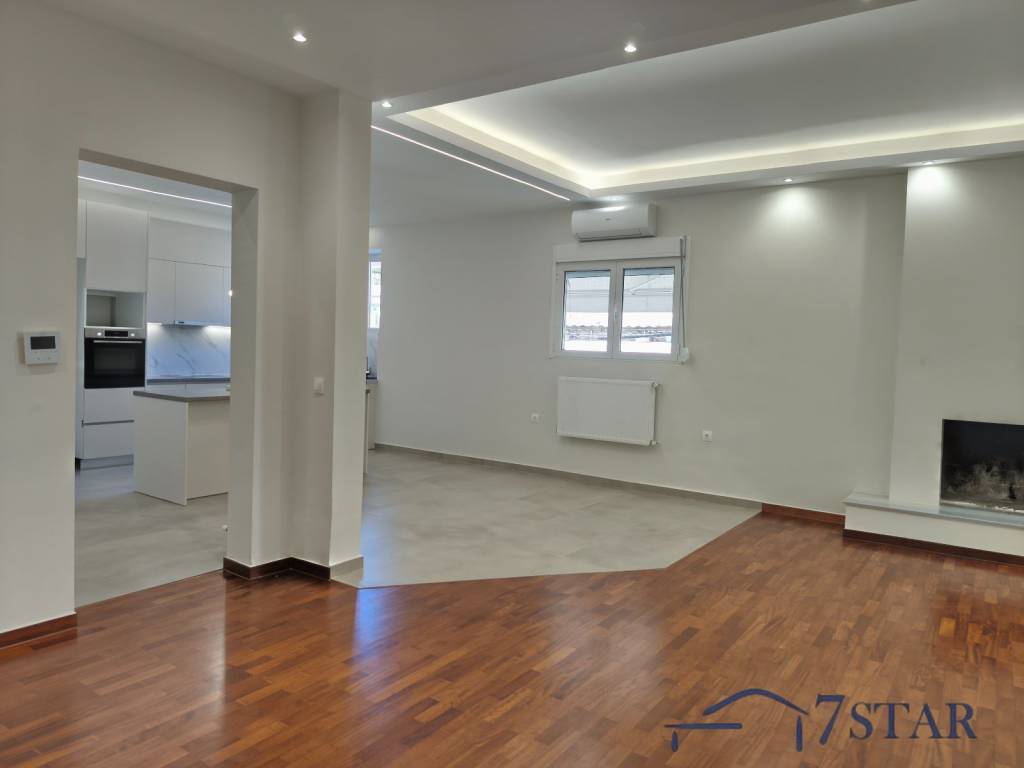 For rent a bright and spacious 135 sq.m. second-floor apartment in Alimos, in a quiet residential area, just 900 m from the sea. The apartment is part of a two-unit building and features three comfortable bedrooms, two bathrooms, and an open-plan kitchen with living room creating a warm and functional living space. It offers a fireplace, autonomous natural gas heating, air conditioning units, electrical appliances, solar water heater, and aluminum window frames. Fully renovated in 2025, it combines modern comfort with a peaceful environment and an excellent location near the beach, making it ideal for a family or anyone seeking quality living in the southern suburbs.
