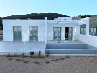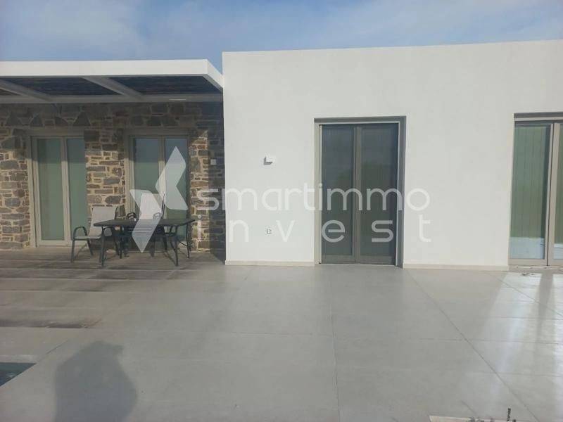 A newly built detached house of 92 sq.m. is offered for sale on a private plot of 400 sq.m., located in the sought-after area of Aspro Chorio – Glyfa, Paros. Completed in 2023, the property reflects modern Cycladic architecture and delivers an elegant balance between comfort, functionality, and refined aesthetics. The residence is arranged on a single level and features a bright living area, a contemporary kitchen, two bedrooms, and one bathroom, offering a well-designed layout that ensures both privacy and ease of living. It is fully furnished and equipped, including underfloor heating powered by electricity, air conditioning, solar water heater, security alarm system, reinforced security door, double-glazed windows, wooden and aluminum frames, and an electric vehicle charging installation. With an A+ energy efficiency rating, the property guarantees low energy consumption and high living standards. The outdoor area includes a private landscaped garden, spacious terraces with open views, built-in BBQ, private swimming pool, private parking space, and direct access from an asphalt road. The eastern orientation ensures abundant natural light throughout the day, while the short distance of only 500 meters from the sea enhances its appeal as both a holiday residence and a high-yield investment property for short-term rentals. An excellent opportunity in Paros, offering premium construction quality, prime location, and strong investment potential.