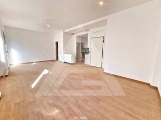 Piraeus, Kastella - Floor Apartment 91sqm plot 100sqm, bedrooms 2, master bedrooms 2, levels 1, 1st, renovated, year built 1940, renovation year 2023, energy class D, living room, kitchen, 2 bathrooms, wc, heating type: individual unit (natural gas), quiet, dual aspect apartment, luminous, frontage, painted, drop ceiling, boiler, balconies, aluminum frames, double glazed windows, door screen, wood floors, without common charges, secure door, pets allowed, residential zone, access from asphalt.