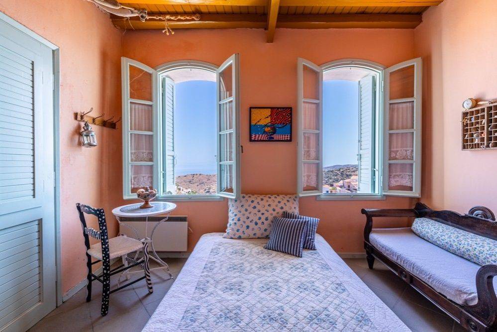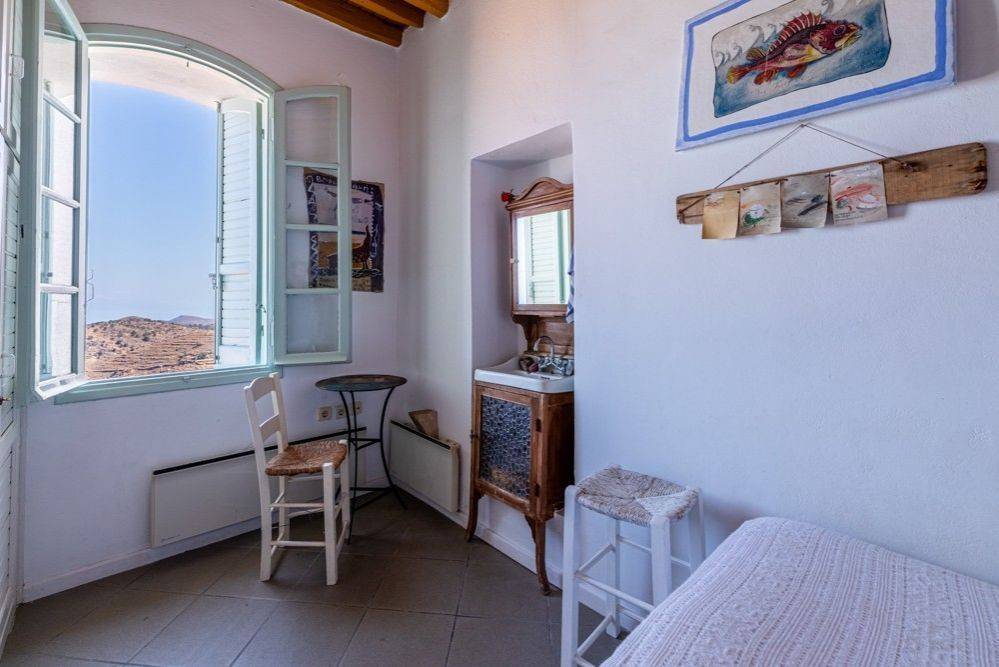 Nestled in the charming village of Ioulida on the island of Tzia, this traditional two-story detached house offers a unique blend of historical charm and modern artistry. Located in the Mesada area, the house can be accessed by climbing the typical Cycladic steps, a characteristic feature of the region. Despite its serene and elevated location, the house is conveniently close to the village’s amenities, including a parking lot, bakery, and mini market. Highlights: Historical Charm: Originally built in the 19th century, the house has been fully renovated by a couple of artists, ensuring that its historical essence is preserved while incorporating modern comforts. Artistic Ambiance: The walls feature works of art and visual interventions that create a unique and special atmosphere throughout the house. Stunning Views: The kitchen and dining area open up to breathtaking views through three large windows. The door leads to a courtyard that serves as a "gallery," offering a Cycladic spectacle day and night. From here, you can admire the entire village, the surrounding hills, the sea with passing ships, and even as far as Evia. Layout: Two Levels: The house is spread across two floors. Bedrooms: 3 spacious bedrooms provide ample accommodation. Living Room: The living room includes an additional bed, perfect for guests. Bathrooms: 2 modern bathrooms. Kitchen and Dining Room: The kitchen and dining area are designed to make the most of the stunning views and provide direct access to the courtyard. Accessibility: Walking Distance: The house is just a few minutes' walk from the upper part of Ioulida, where essential amenities are located. This dream house offers a perfect retreat for those who appreciate the fusion of history, art, and natural beauty. Its unique location and artistic touches make it an ideal choice for anyone looking to experience the quintessential Cycladic lifestyle. Ioulida or Chora is the capital of Kea and seat of the Kea-Kythnos Regional Unit. It is the capital of the island "Kea" or "Tzia" as it was named during the Turkish occupation, it is also called "Chora" like all the capitals of the islands in the Cyclades. It is built amphitheatrically in the interior of the island, on the hills of Kastro and Mylon, in the same place with the ancient Ioulida. Popular in the summer months as a tourist destination with middle-class travelers from Athens, it is an easy destination because it is close to Attica, opposite Lavrio which is connected by ferry. The city is not urbanized, so there are no cars, visitors park outside the city entrance. The port of Korissia is 5 kilometers from Ioulida and is the destination of ships from Lavrio. For the capital Ioulida as they say "it is the city that has never changed" and "its architectural style differs from the classic Cycladic, the heart of the town is the square with the great Venetian wall"