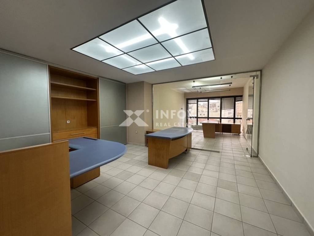 Ενοικιάζεται γραφείο συνολικής επιφάνειας 61 τμ (50 καθαρά) στο κέντρο της Θεσσαλονίκης. Βρίσκεται στον πέμπτο όροφο της οικοδομής η οποία χτίστηκε το 1998 και διαθέτει δύο ανελκυστήρες. Αποτελείται από δύο χώρους και δικό του w/c. Διαθέτει πόρτα ασφαλείας, δάπεδο από πλακάκι, συνθετικά κουφώματα με διπλό υαλοπίνακα και κλιματισμό για θέρμανση-ψύξη. Παραδίδεται με τον εξοπλισμό που απεικονίζεται στις φωτογραφίες.