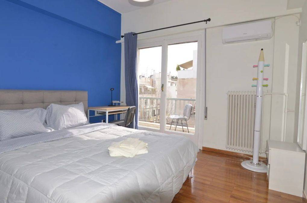 A renovated and bright apartment of 67 sq.m. is available for rent on the 6th floor in the Neapoli – Exarchia area. The property consists of two bedrooms, a living room, kitchen, and bathroom, offering a comfortable and functional layout. It features independent electric heating, air conditioning, wooden window frames with single glazing, floors with wood and mosaic, elevator, security door, electrical appliances, internet, and a balcony. The apartment is painted, furnished, front-facing, bright, with an east orientation and views of open space and the urban landscape. It is also suitable for professional use. Located in an excellent area, very close to public transport, the central square, shops, and dining options. The indicated location is approximate. For more information or to arrange a viewing: KOSMOS REAL ESTATE Property Manager: Alexis Kosmopoulos – +30 6986109593 info@kosmosrealestate.gr www.kosmosrealestate.gr