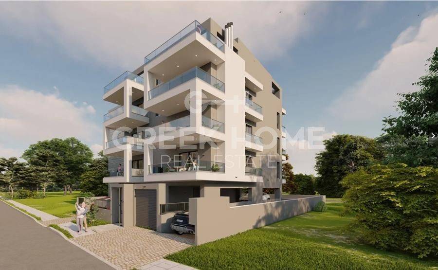 Pallini (Attica - Eastern Suburbs) - Apartment 75sqm bedrooms 2, 2nd, newly built, year built 2024, energy class A+, living room, hall, kitchen, bathroom, wc, heating type: autonomous (heat pump), air condition, parking covered, quiet, painted, drop ceiling, electric roller shutters, storage space, solar heater, boiler, external thermal insulation, fireplace, balconies, elevator, garden, thermal shut-off frames, double glazed windows, ceramic tiles floors, handicap ramp, three phase electricity, secure door, alarm, surveillance cameras, video doorbell, luxurious, smart home, ev charger, satellite, internet.