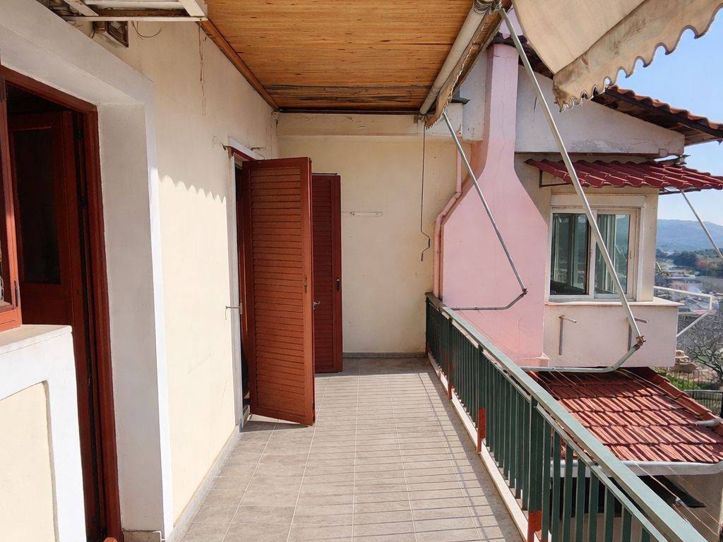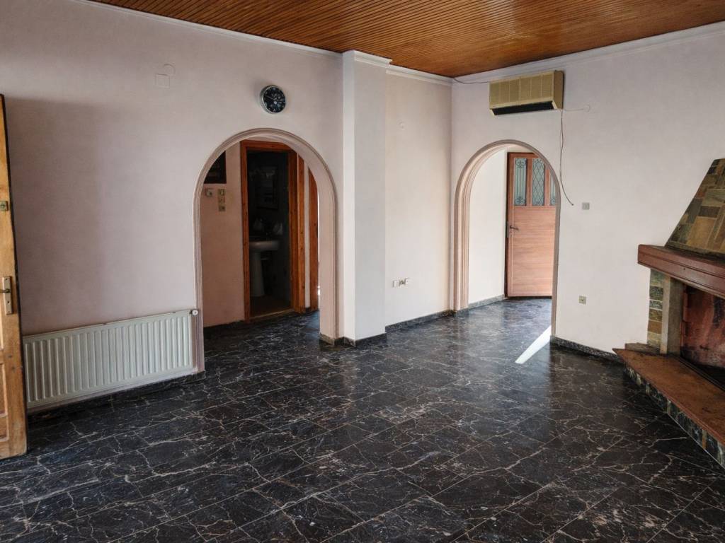 Detached house of 140 sq.m. for sale, located in an excellent panoramic spot in the old center of the village, right next to the Town Hall and the historic, renovated church of Aghios Georgios. The property consists of: 1. Upper Floor (70 sq.m.), livable, including: - 2 bedrooms - Kitchen - Spacious bathroom - Fireplace - Oil central heating & air conditioning (A/C) - Balcony with panoramic views of the village and the mountain, as well as views of the historic church from the entrance side - Aluminum window frames 2. Lower Level (70 sq.m.), unfinished, with a separate entrance, suitable for renovation and conversion into an independent residence or for use as storage space. It features wooden window frames and doors, as well as electrical installations (lighting, etc.). The property also includes a small courtyard, with easy access. An ideal choice for a permanent residence, holiday home, or investment opportunity in an area of tourist interest.
