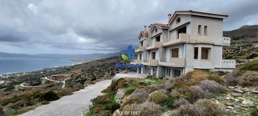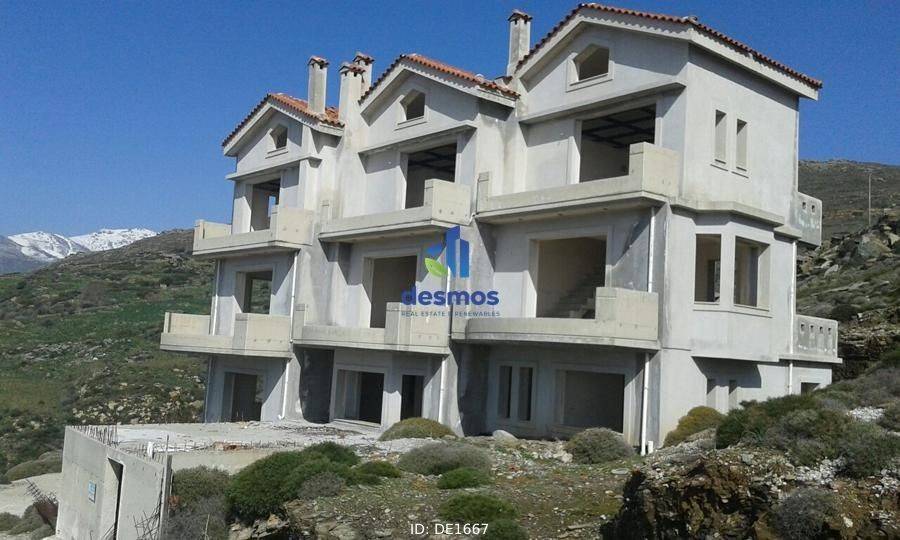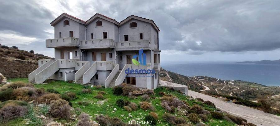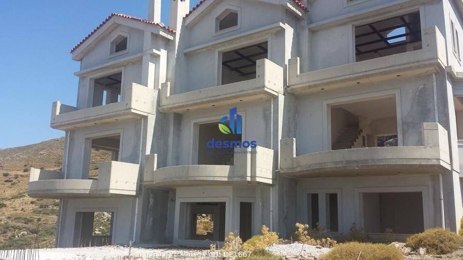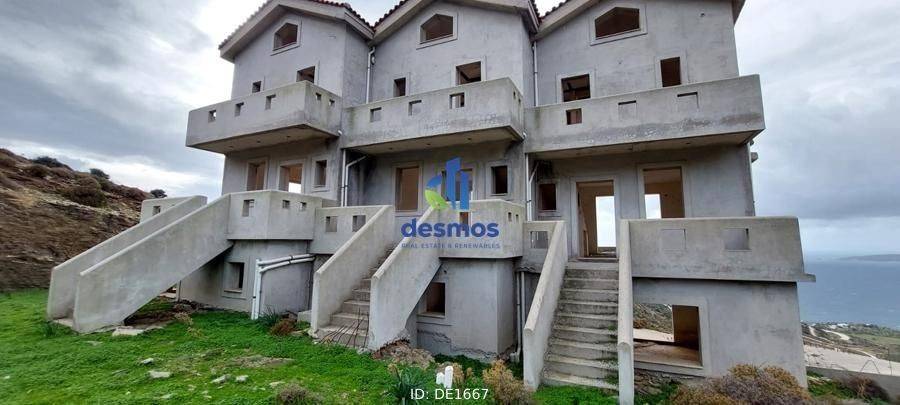 KARYSTOS Bouros - Aviation Cooperative, unfinished detached house of 200 sq.m., semi-basement - ground floor & 1st floor, built in '09, unlimited sea view, Complex of three maisonettes of 66 sq.m. each on a corner plot of 500 sq.m., consisting of 3 levels, semi-basement - Ground floor & 1st floor of 22 sq.m. each. Also included is an adjacent plot of 500 sq.m. with an additional building of 130 sq.m. The plumbing installations have also been completed in the building. Distance from the sea 1,500 m and distance from the center of Karystos 10 km.