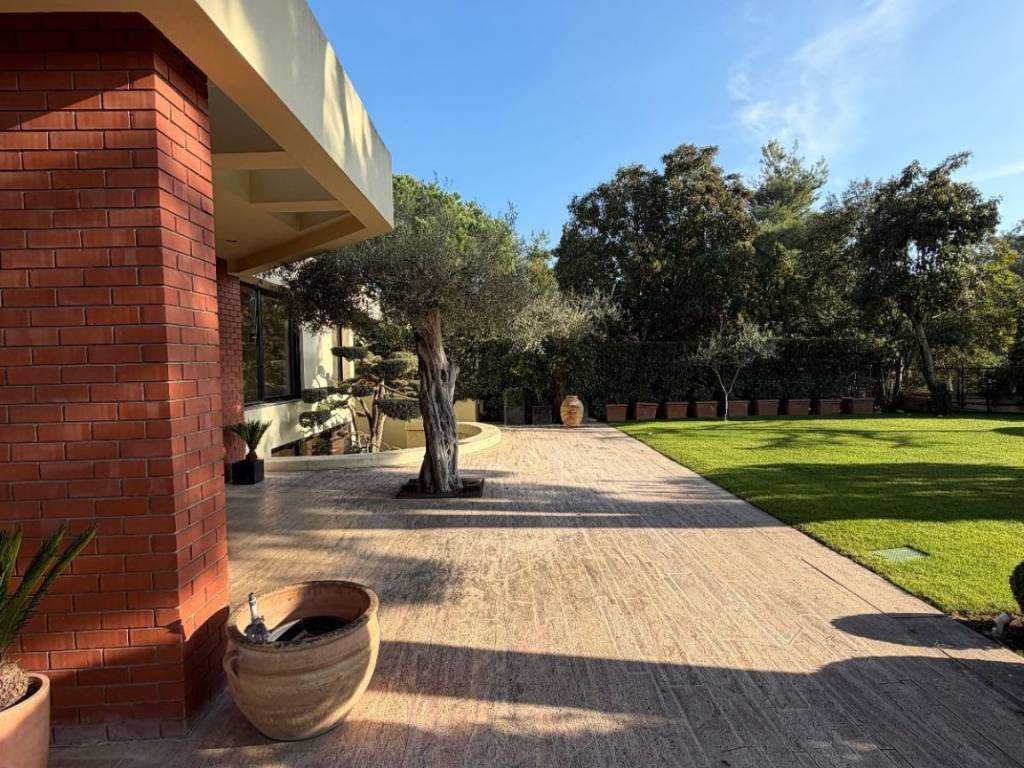 Panorama N.751 in a private location, a corner house of impressive architecture is for sale with a total area of 380 sq.m. extending over 2 levels. The selection of trees and plants within the plot makes the property particularly impressive and noteworthy. The house has 4 bedrooms, 3 bathrooms, a kitchen and 2 living rooms. This property stands out due to the marble and wooden details it has in its interior. Selling price: €1,350,000