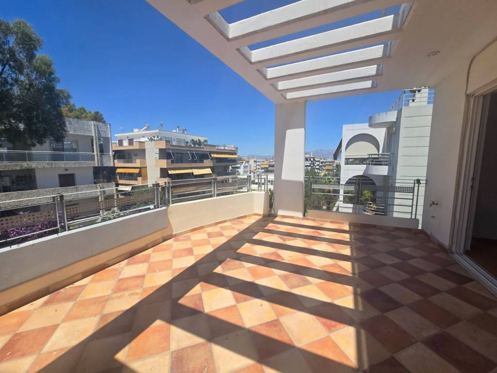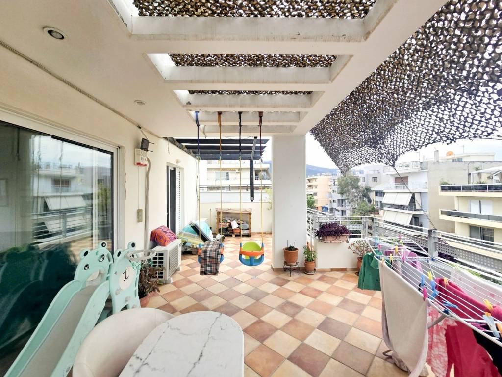 This is a 4th - 5th floor maisonette with a total area of 172 sq m which was built in 2005. It is divided into two levels which are configured as follows: on the 4th floor there is a large living room with fireplace, independent kitchen, a bedroom and a bathroom. We go up to the 5th floor with an internal staircase where there are 2 bedrooms, one of which is a master with its own bathroom and another bathroom. It has autonomous natural gas heating, solar water heater, wooden oak floors in almost all areas, large verandas with unobstructed views, security door, storage room and 2 underground parking spaces. It is located near a local market, close to sports facilities and 600m from the Nomismatokopio metro stop.
