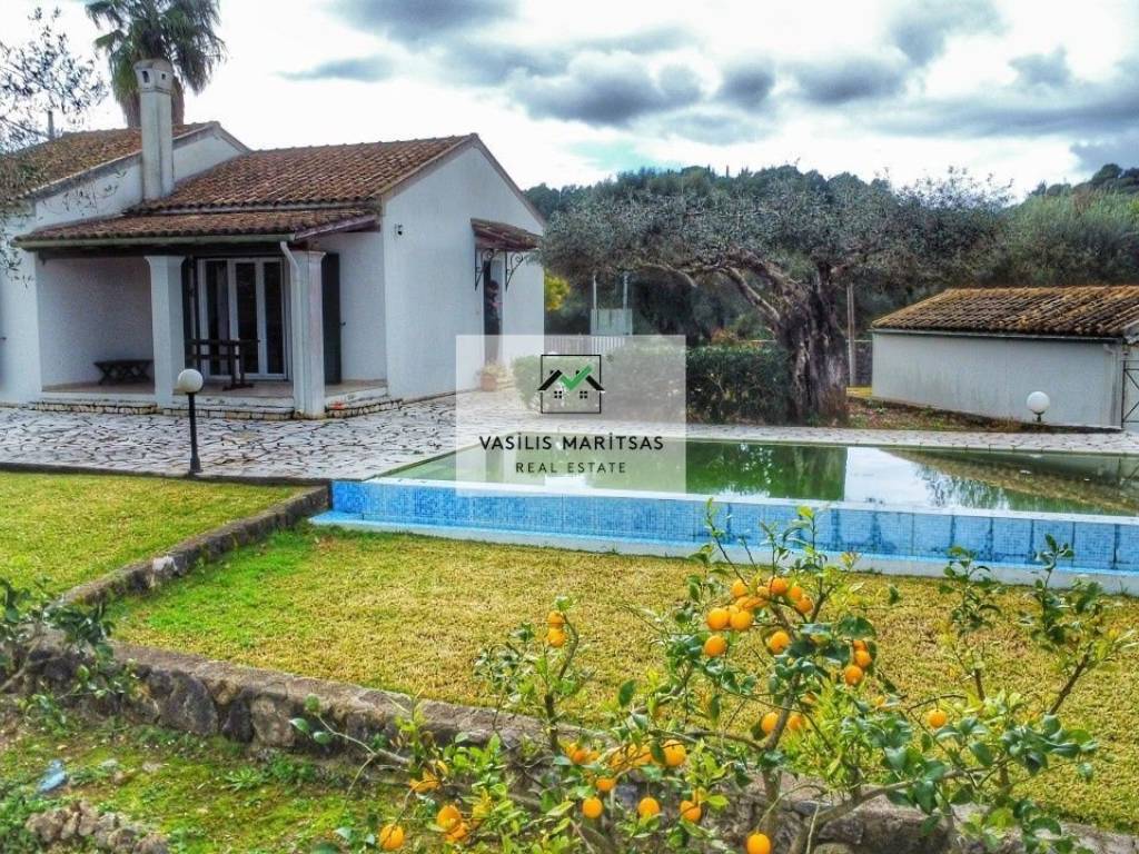 Villa for sale with a total area of 78.16 m², built in 2005, on a plot of 1,140 m² for exclusive use, in a quiet and privileged location in the Vasilika - Agios Ioannis area (near Aqualand). ️ The villa includes: ✅ Two bedrooms, one with a private bathroom (en suite). ✅ An additional shared bathroom. ✅ Open-plan kitchen, dining room, and living room with a fireplace. ️ Property features: ✅ Aluminum window frames with double glazing and screens. ✅ Air conditioning throughout the residence. ✅ Delivered with furniture and electrical appliances, offering immediate use of the property. ✅ Swimming pool with an area of approximately 40 sq.m. ✅ Ground floor garage of 35 sq.m. ✅ Storage room with a total area of 15 sq.m. ️ The villa is located on a plot of 1,140 sq.m. for exclusive use, with a combination of paved surfaces and landscaped green space with lawn. The outdoor area is fully fenced with a stone wall and has an electric entrance gate, ensuring security and privacy. It is approximately 6-7 kilometers from the popular beaches of Kontogialos, Glyfada, and Ermones. The property is suitable for both owner-occupancy and investment with rental through various platforms such as AIRBNB, BOOKING, etc. VM - REAL ESTATE AGENCY ☎️ Contact phone: 6938014054 Email: info@vmrealestatecorfu.com https://www.vmrealestatecorfu.com/en/home