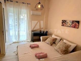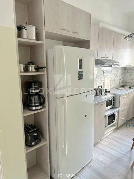 Kolonos - Apartment 70sqm fully furnished, bedrooms 2, levels 1, ground floor, renovated, year built 1970, renovation year 2021, energy class F, living room, kitchen, bathroom, heating type: individual unit (natural gas), air condition, dual aspect apartment, luminous, frontage, painted, balconies, tents, elevator, aluminum frames, double glazed windows, wood floors, night electricity discount rate, secure door, satellite, pets allowed, residential zone, eastern orientation, access from asphalt.