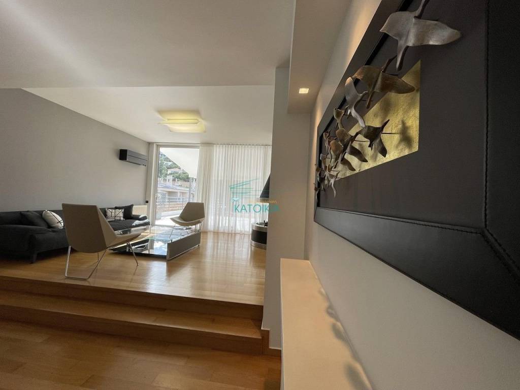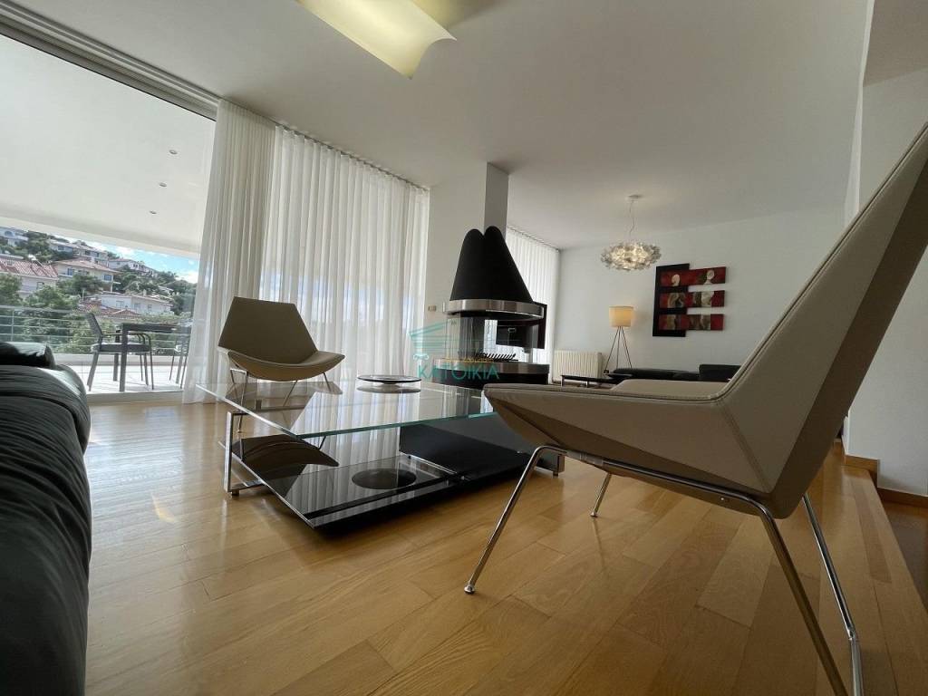 PENTELI, Maisonette 230 sq.m., painted, 2 levels, 2nd floor, luxurious, for investment, at residential area, year of construction 2005, n/a, open view, 4 b/r, 2 master b/r, living room, fireplace, 2 bathrooms, 1 WC, kitchen, double-sided, front facing, bright, heating autonomous, solar panel, with energy class C, with floor type n/a, with n/a joinery, double glass pane, double glazing, internal staircase, elevator, disabled access, door tv, security door, alarm, veranda 60 sq.m., pets allowed, storage room 13 sq.m., closed garage, code 58504