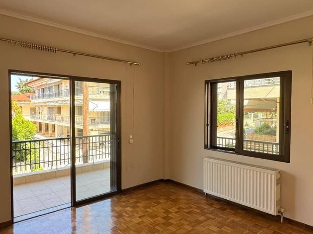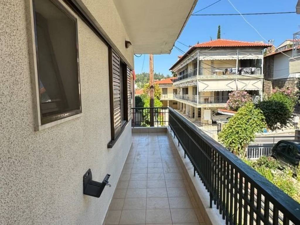 Independent 1st Floor Apartment in the Center of Panorama In an excellent location, just 200 meters from the Primary School and Kindergarten, 200 meters from the bus stop and 100 meters from the church of Agios Georgios, this 120 sq m apartment is located on the 1st floor of a two-story building, above a pilaster, in the heart of Panorama. It has a hall that leads to the rooms and to an open-plan living room with dining area and fireplace, ideal for family moments of relaxation. The kitchen is separate, with plenty of storage space, functional and comfortable, while the bathroom and kitchen have undergone partial renovation. In the night zone there are three bedrooms and two bathrooms that offer comfort and privacy. The apartment has perimeter balconies that fill the house with light and air, with screens in all areas and awnings around the perimeter. The heating is autonomous with its own oil burner.