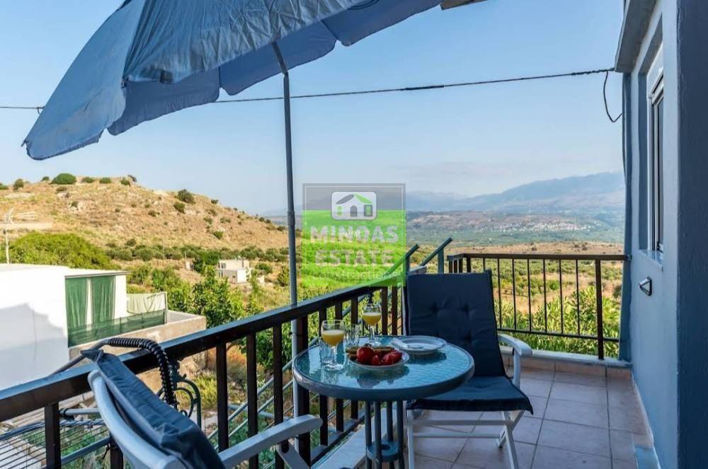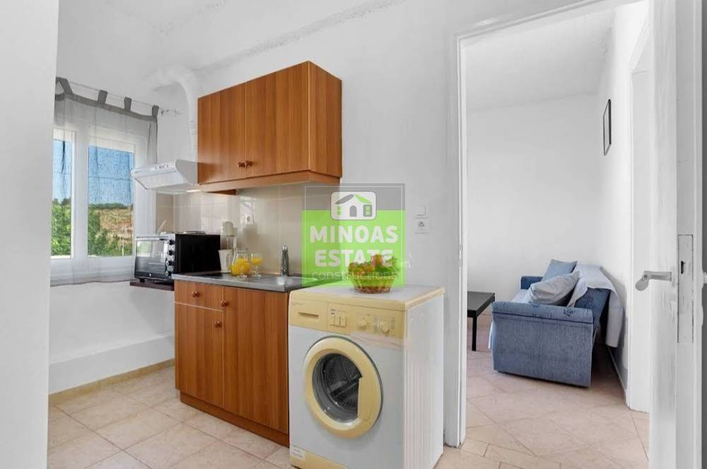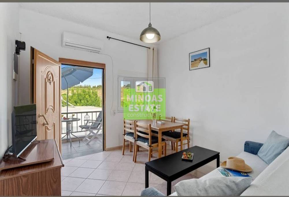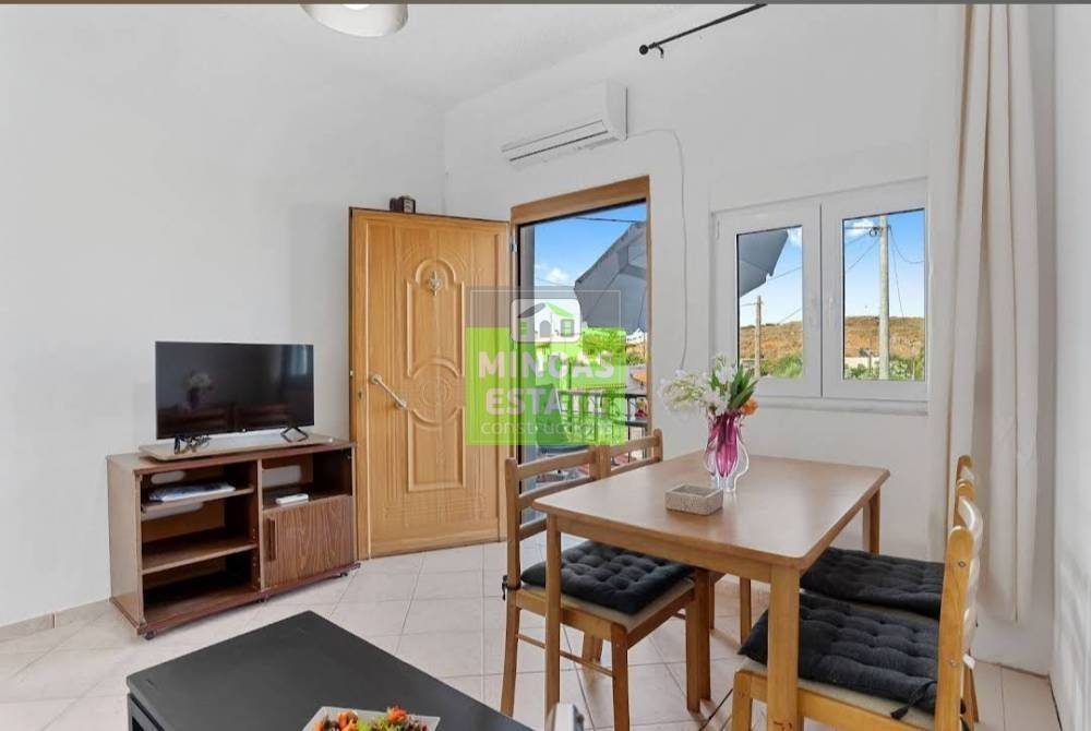 Souda, Megala Horafia: For rent bright Apartment 55 sq.m. on the 1st floor with individual heating (air conditioning. It consists of 2 bedrooms, 1 kitchen, 1 living room, and a bathroom. It is fully furnished, equipped, with electrical appliances, painted and has a nice view, aluminum frames with double glazing, security door, outside parking space, tile floors, screens, solar water heater. It is ideal for workers. Price 430€ (long-term rental) Available from 2/28/2026 |. Property Code: #E-200645
