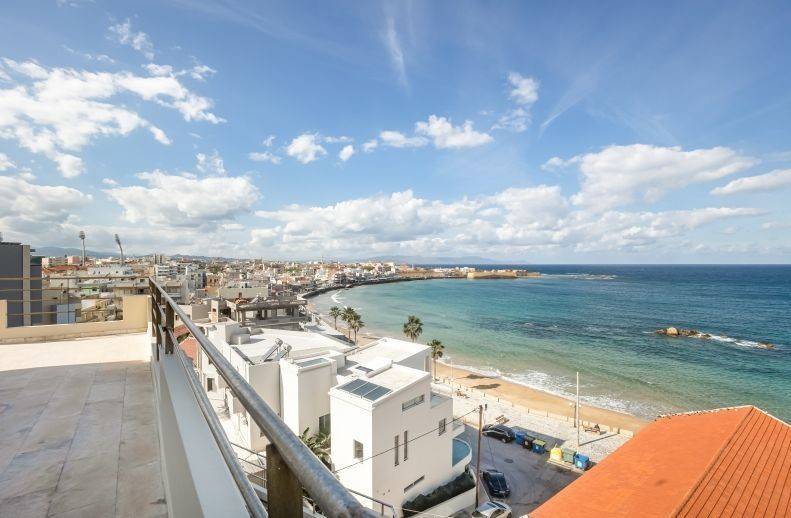 Продаётся великолепная угловая квартира-пентхаус на 5-м этаже площадью 100 кв.м, расположенная всего в 50 метрах от моря, в престижном прибрежном районе Кум Капи, г. Ханья. Дом построен в 2000 году (энергетический класс D). Квартира отличается панорамным, беспрепятственным видом на Критское море, город Ханья, Старый порт и Белые горы. Планировка включает: 2 спальни (одна из которых может быть объединена с гостиной при помощи элегантных деревянных раздвижных дверей) Просторную и светлую гостиную с камином Отдельную кухню 1 ванную комнату с ванной и душем 1 гостевой WC Большая угловая терраса опоясывает квартиру и предлагает захватывающие панорамные виды — идеальное место для ужинов на открытом воздухе, отдыха и наслаждения критскими закатами. Дополнительные характеристики: Подземное парковочное место 23 кв.м Частное кладовое помещение Система отопления fan coil Кондиционеры (A/C) Солнечный водонагреватель и бойлер Раздвижные алюминиевые окна с двойными стеклопакетами Мраморные полы Встроенные шкафы Лифт Оптоволоконный интернет Расстояние до аэропорта Ханьи — 12 км Район Кум Капи — один из самых востребованных и аутентичных прибрежных районов Ханьи, в пешей доступности от центра города и Старого города, рядом кафе, рестораны и вся необходимая инфраструктура. Идеально подходит для: ✔ Постоянного проживания ✔ Дачи / второго дома у моря ✔ Инвестиции высокого класса в одном из самых сильных рынков недвижимости Крита Редкая возможность приобрести пентхаус первой линии с уникальными видами и исключительным расположением в центре Ханьи.