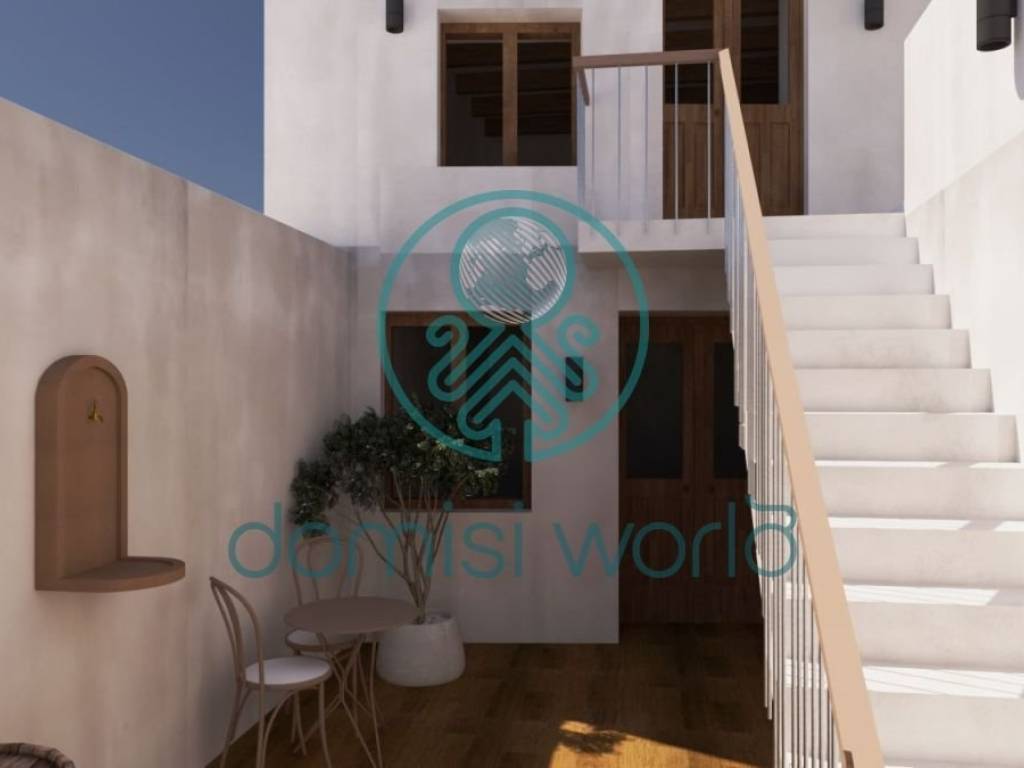 - Kitchen: Space allocated for kitchen installation.  - Outdoor Space: Traditional stone courtyard