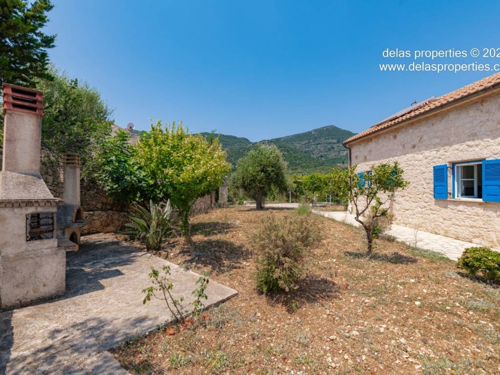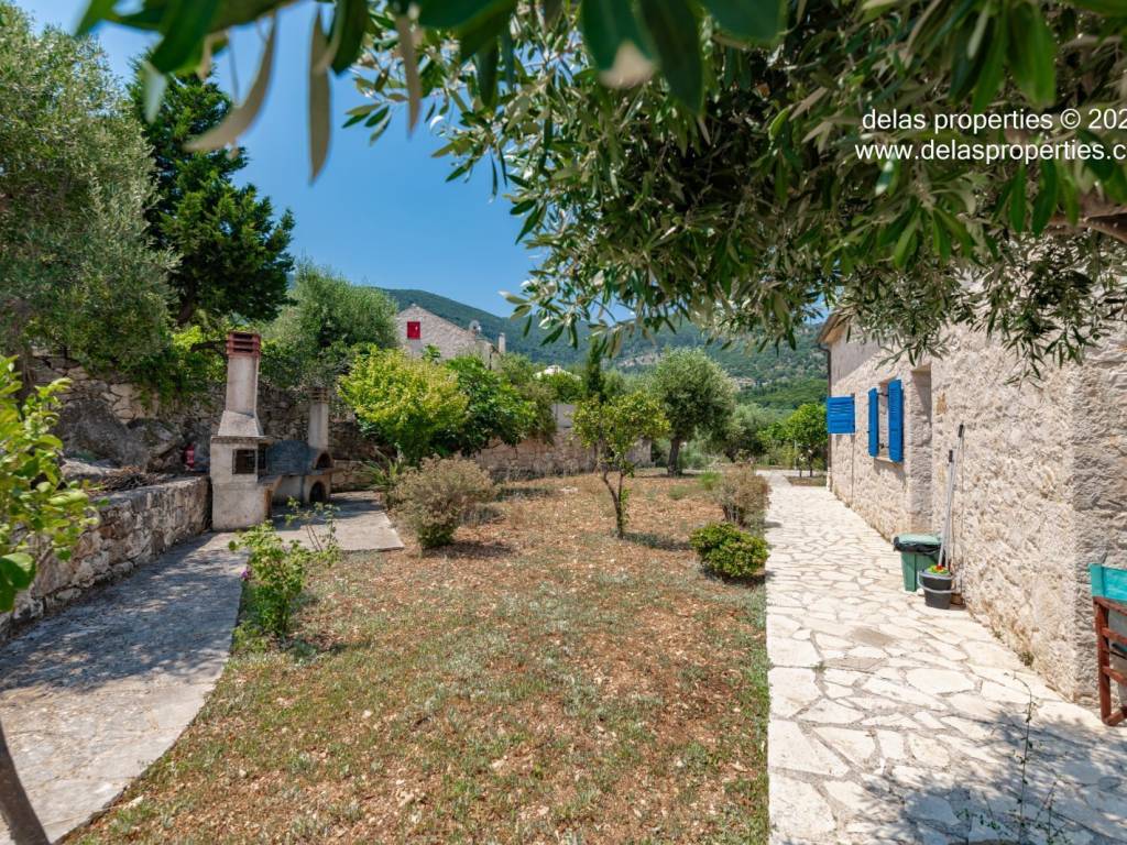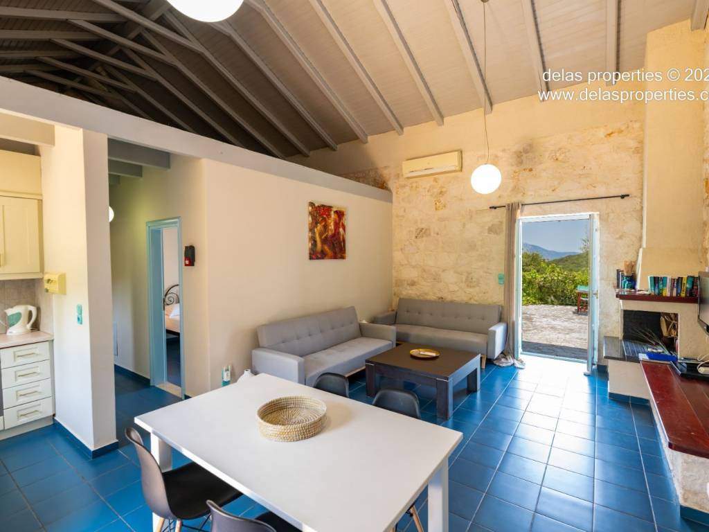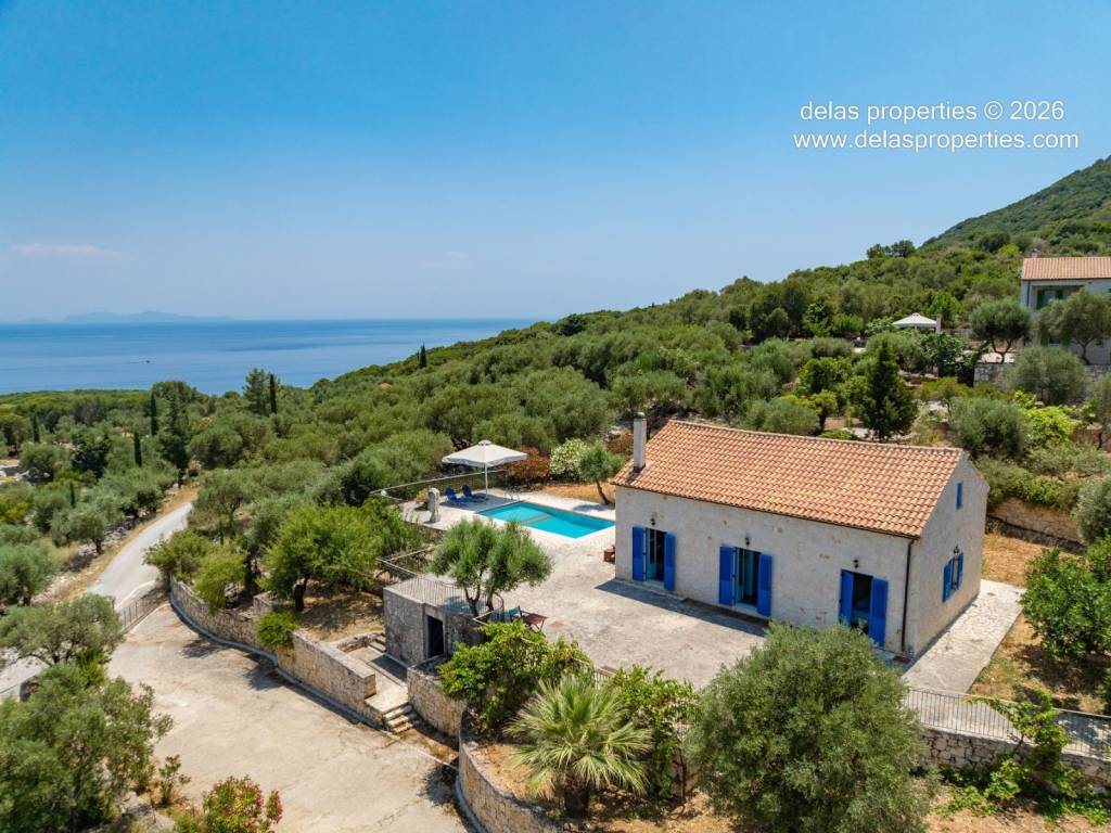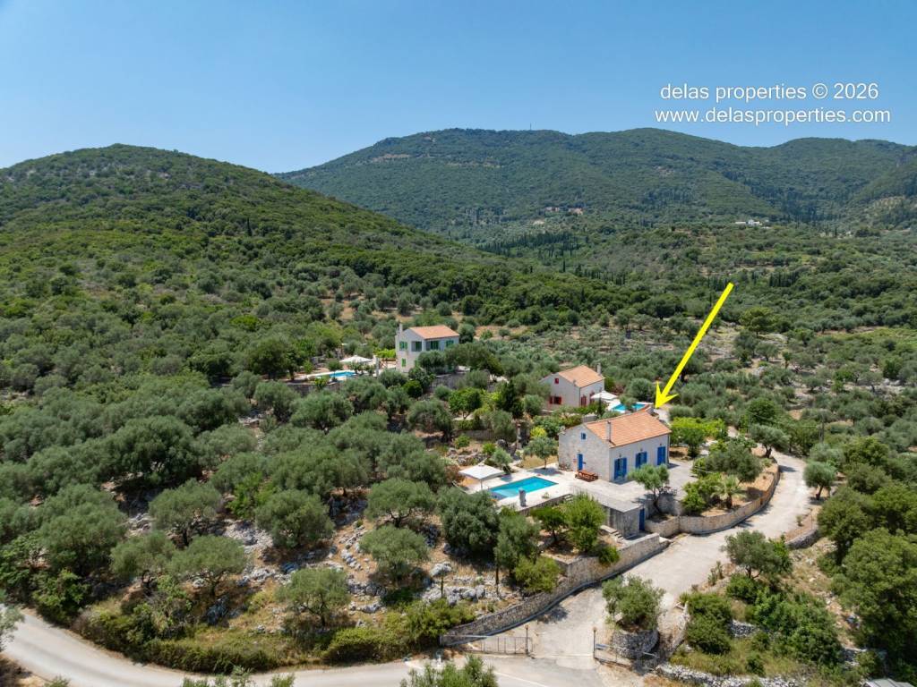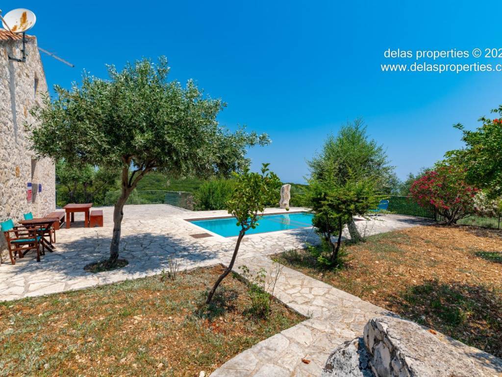 Set in the peaceful hillside area of Anavrytikes, south of Vathy, this stone-built villa offers a rare combination of privacy, open views, natural surroundings and easy access to the sea. Surrounded by olive trees and positioned on its own independent section of land, it feels calm, discreet and genuinely connected to the Ithacan landscape. The villa stands on a private vertical ownership of 2,045.09 sq.m. and includes a 76.63 sq.m. main residence, a 29.80 sq.m. private swimming pool, 38.13 sq.m. storage space, a 29.31 sq.m. water tank, and a 34.38 sq.m. pergola. It is located approximately 1.5 km from Kaminia Beach and only 3.2 km from the centre and port of Vathy, making it highly practical without losing its sense of seclusion. Externally, the property opens beautifully to the landscape. The large stone-paved terrace extends naturally from the house to the pool area, creating a generous outdoor living environment with light, openness and privacy. Olive trees, low stone walls, gentle landscaping and a subtle sea reference give the property a setting that feels authentic rather than staged. There is also a BBQ area and private parking shaded by a natural planted pergola, making everyday use both comfortable and elegant. Inside, the villa has a bright and relaxed atmosphere. The main living area combines sitting room, dining space and kitchen under a high timber roof, with exposed stone walls, a fireplace and direct access to the terrace. The overall feel is fresh, simple and quietly refined, with a distinctly Mediterranean character. The house offers 2 bedrooms and 2 bathrooms, making it ideal as a private holiday home, an easy-to-manage second residence, or a high-quality property for seasonal use. It is the kind of home that appeals to buyers who value peace, beauty, practicality and the long-term strength of owning a well-positioned villa on Ithaca. This is not an oversized or ostentatious property. Its value lies elsewhere: in its proportions, its setting, its privacy, and the ease with which it can be enjoyed from the first day. For buyers looking for a stone villa near the sea, with its own pool, its own outdoor life, and a strong sense of place, this is a compelling opportunity. For more information or a viewing: Stavros Dellaportas – +30 6977683147 (WhatsApp & Viber) delas@otenet.gr www.delasproperties.com