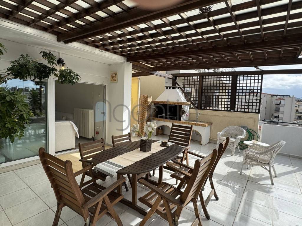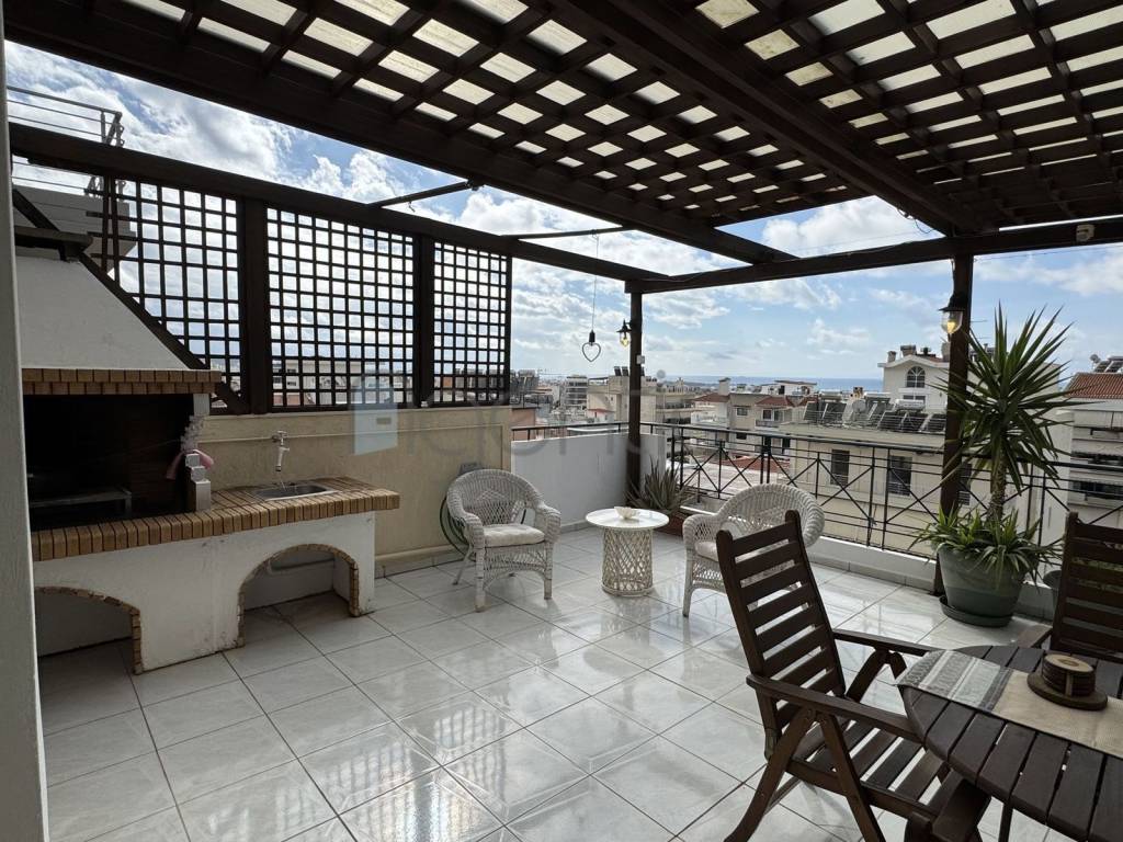 Located in a selected spot of Glyfada, a 5th-floor penthouse apartment of 75 sq.m. is available for rent, offering unobstructed sea views. Built in 2006, the property is in excellent condition. The residence features a balanced and functional layout with 2 bedrooms, 1 bathroom, a kitchen, and a comfortable living area. It is front-facing, bright, and fully furnished, with an east-southeast orientation and panoramic views of the sea, mountain, and urban skyline. The spacious veranda and the privilege of the top floor enhance the sense of privacy and quality of living. Features: autonomous oil heating, radiators, aluminum window frames with double glazing, electric shutters, wooden and tiled flooring, energy class B+. Additional amenities: closed parking space, storage room, elevator, electrical appliances, awnings, security door, video intercom, and BBQ. The property is in immediate proximity to the metro, public transport, a square, supermarket, and shopping center, ensuring everyday convenience without compromise. A well-rounded rental opportunity in Glyfada, ideal for those who value views, natural light, and functionality in a dynamic residential environment. Price: € 1,100 / month | Agentia Real Estate | Phones: +30 2109612980 / +30 6970020974 | Email: info@agentia.gr | Website: www.agentia.gr
