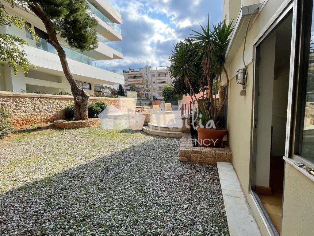 Elevated ground floor apartment of 94 sq.m. for sale in Kato Glyfada, in an excellent location between the sea and the shopping center. The property is located in a quiet neighborhood with a garden and a communal swimming pool and has bright spaces, an internal staircase and 45 sq.m. storage spaces in the basement. High-standard construction with autonomous heating, air conditioning, security door and alarm. The kitchen and bathroom need renovation. Mobilia Real Estate, contact phone: 2107563200, 2107563202, email: info@mobilia.gr, website: https://www.mobilia.gr