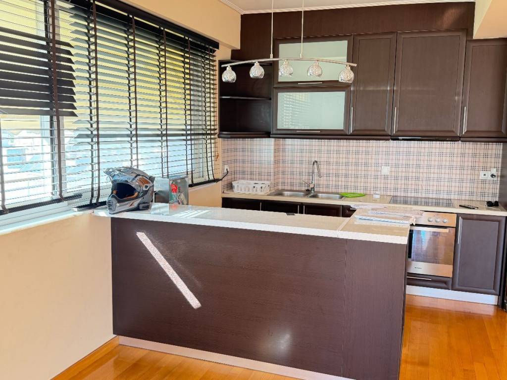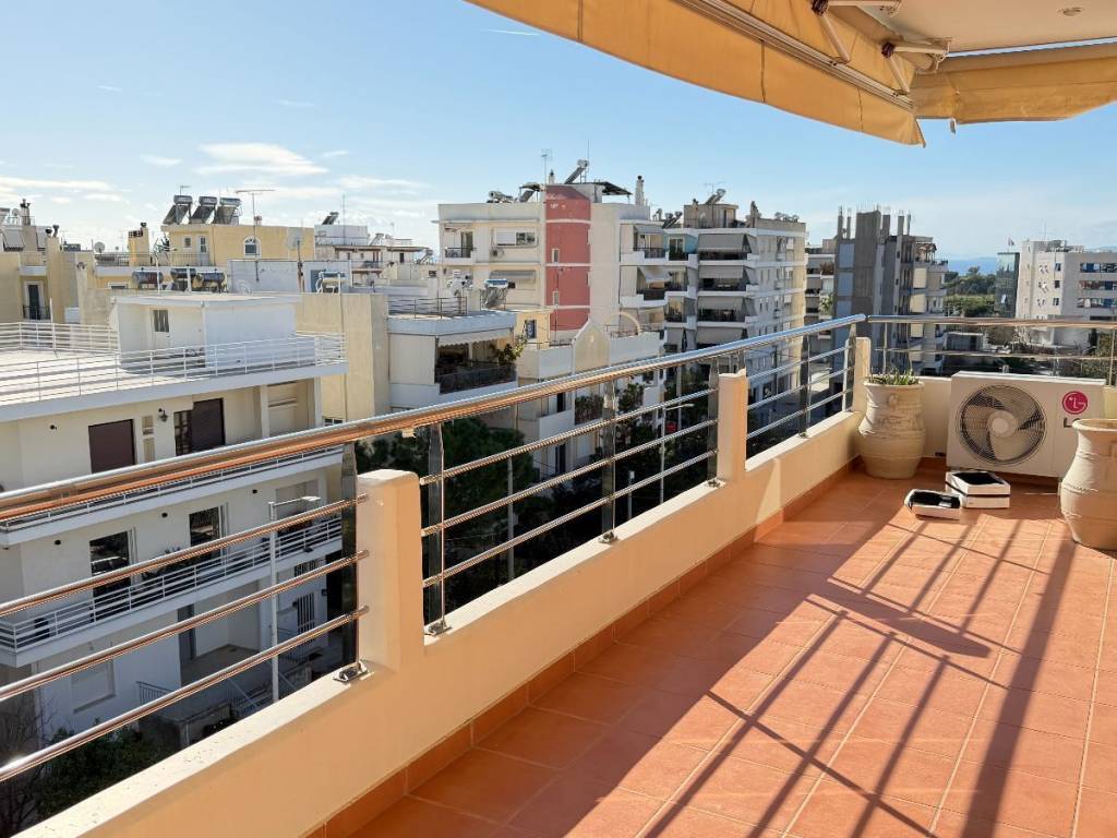 Excellent apartment with a view to the sea and the park of Elliniko. It is an apartment with 2 bedrooms, a large bathroom with a bathtub, a comfortable living room with a fireplace and an open plan kitchen. The apartment has large terraces around the perimeter with an open horizon and a view to the sea. It has autonomous heating with a central natural gas boiler, a triple energy boiler (solar-PV-electricity) and aluminum frames with double glazing. Also on the property there is an underground parking space and an underground storage room. The spot is excellent and next to the central market of Argyroupoli. This is an excellent case of a family home in a purely residential area with panoramic views.