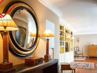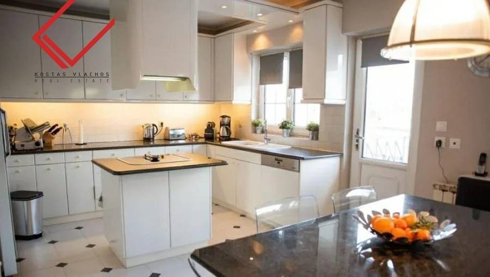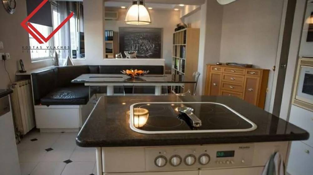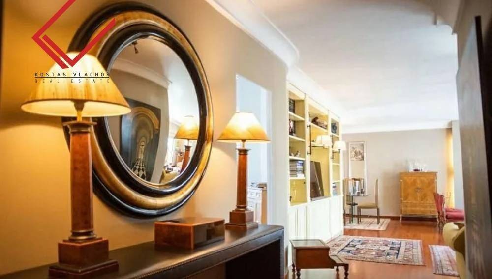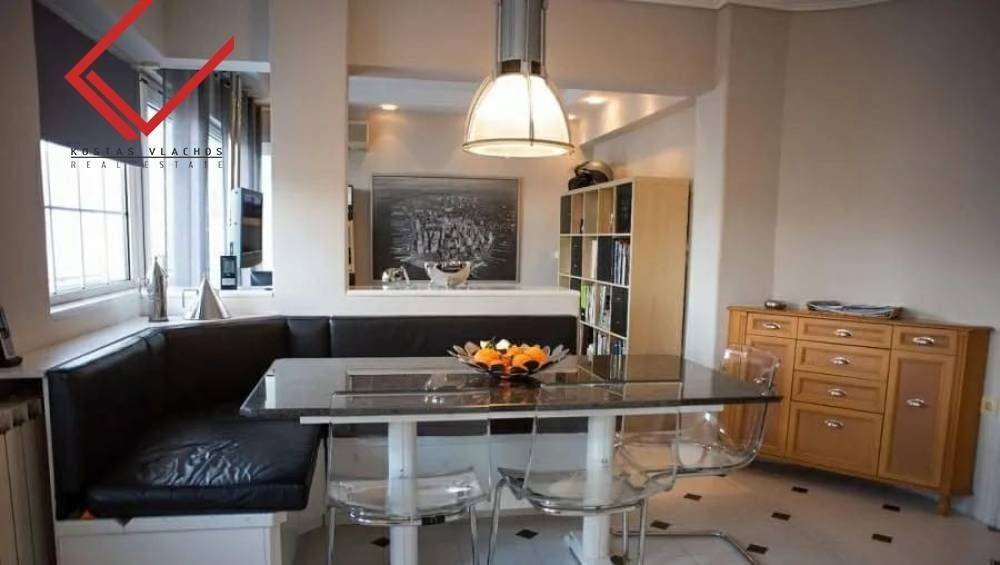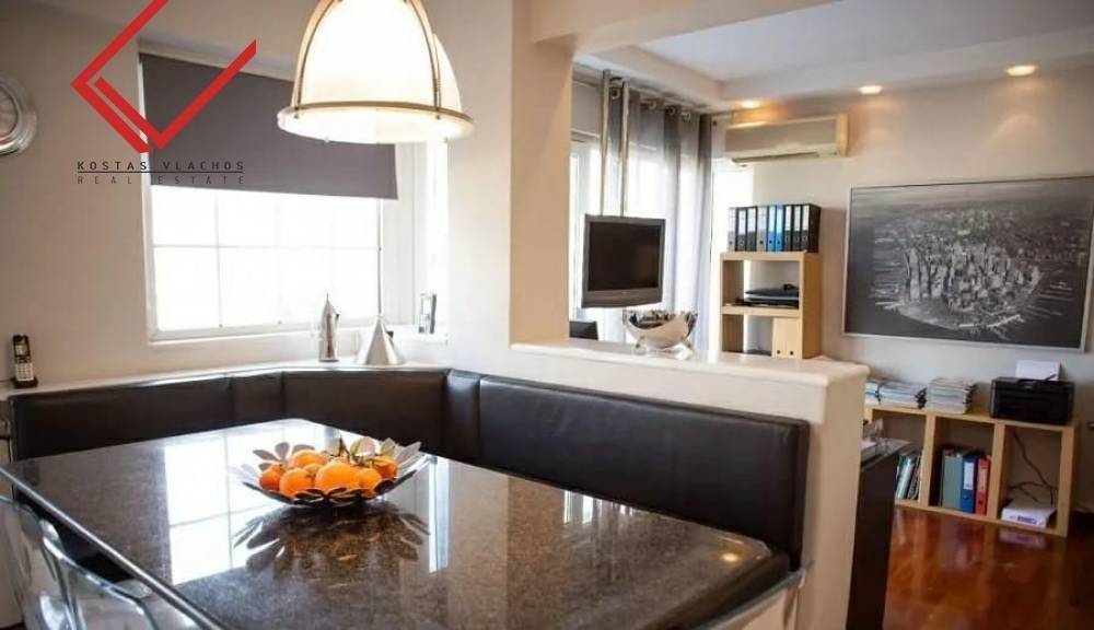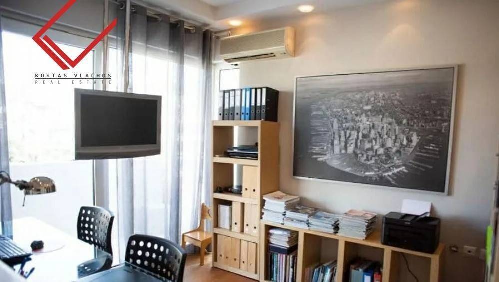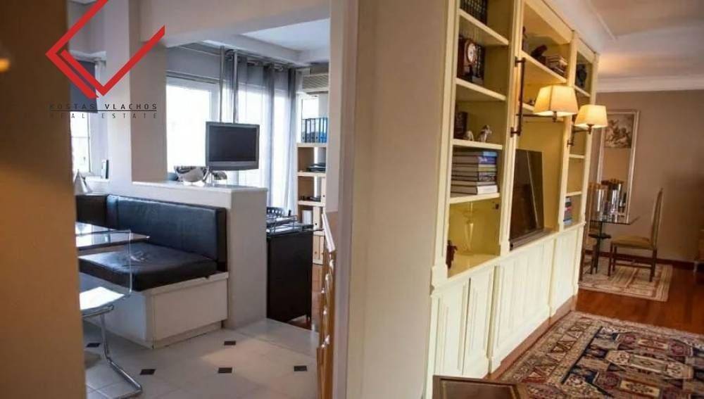 Glyfada, Kato Glyfada: Luxury 174 sq.m. On the 4th floor in Glyfada, ideal for families and investment property. Manufactured 1990, features 3 bedrooms, office, spacious lounge with fireplace, islet kitchen, 1 bathroom, 1 WC, basement warehouse of 14 sq.m. and 2 parking spaces. It enjoys unique sea and mountain views, exclusive use of 85 sq.m. and terraces of 100 sq.m. Equipped with autonomous oil heating, energy class C, Doussie wooden floors, double glazed aluminum windows and hidden lighting. It is located 800 meters from the Elliniko Metro, 850 m from Ellinikon Park, 3 km from the Glyfada commercial web and 3.5 km from the sea. Price 650,000 € | Property Code: #6938