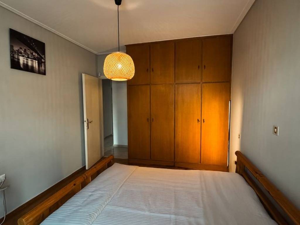Top-floor apartment in a 4-storey building, air conditioners in all bedrooms as well as in the kitchen and living room, solar water heater, airy, bright (windows and balcony doors all around), elevator, 2 entrances with security doors, alarm system, night-rate electricity, double-glazed windows, awnings, wrap-around balcony, thermal-break aluminum frames, electric roller shutters. Flooring: Wooden floors in the bedrooms, marble in the living room and kitchen. Heating: Autonomous natural gas. Kitchen renovated in 2000. New window frames and painting in 2003. Close to: Panagitsa tram stop, bakery, grocery store, supermarket, butcher, 800 m from Edem beach. Fully furnished, with brand-new electrical appliances (fridge, oven, induction hobs, washing machine and dishwasher). No real estate agents. Preferred method of contact: Leave a written message and I will get back to you, otherwise call me between 6–8 pm.