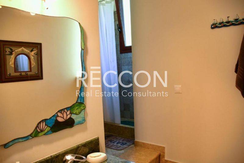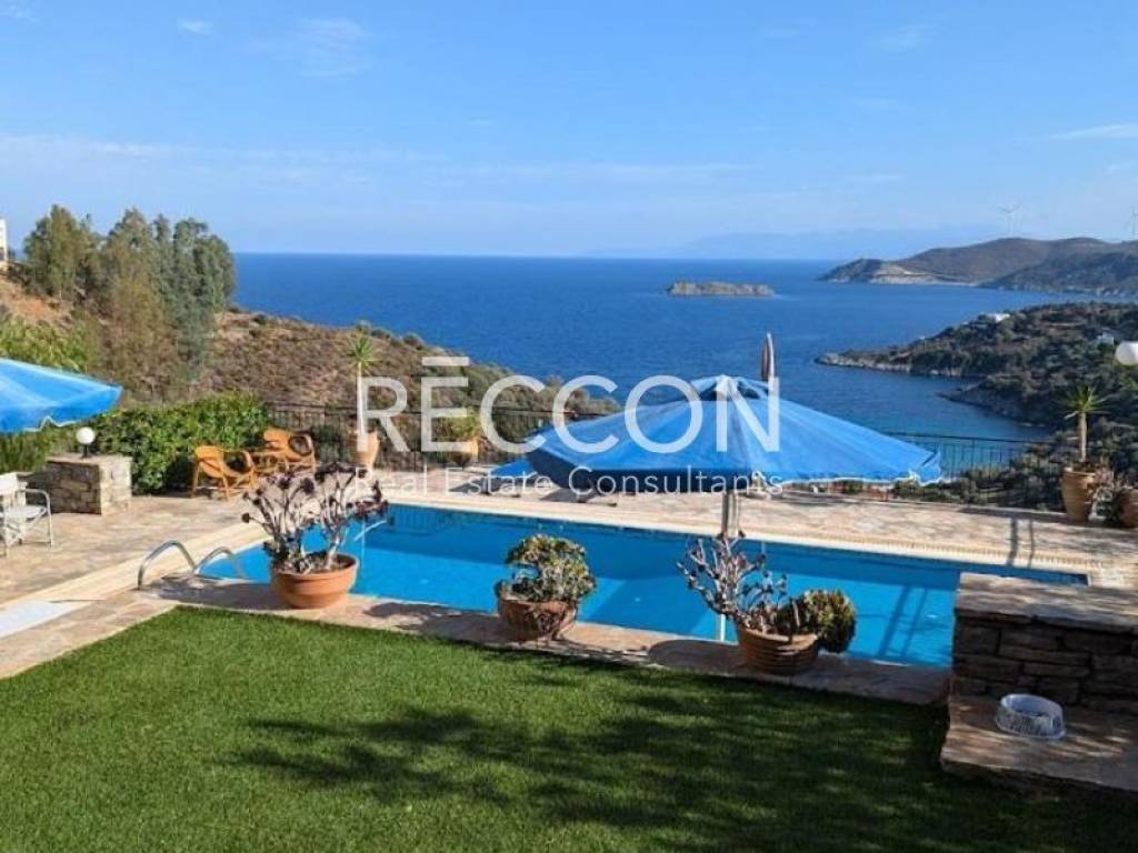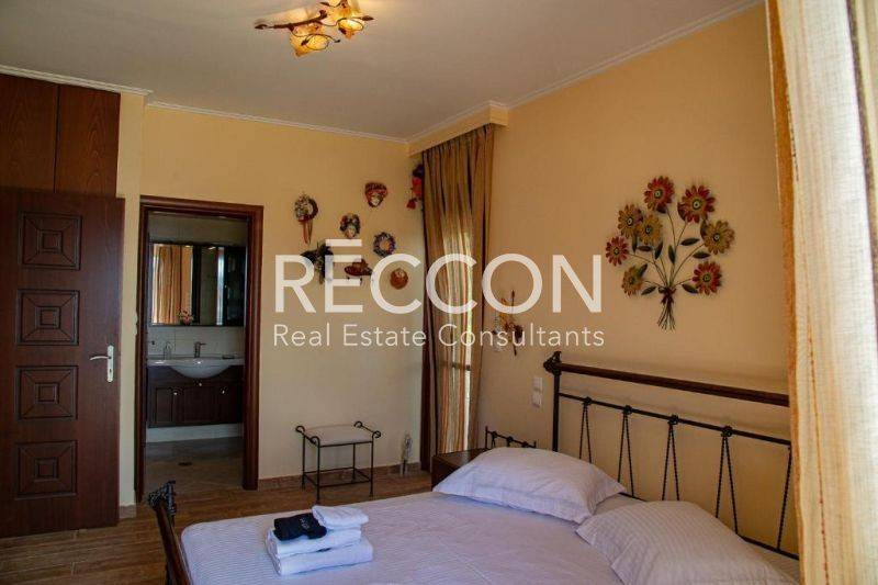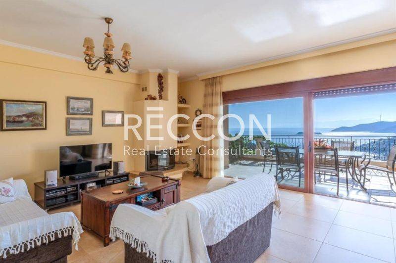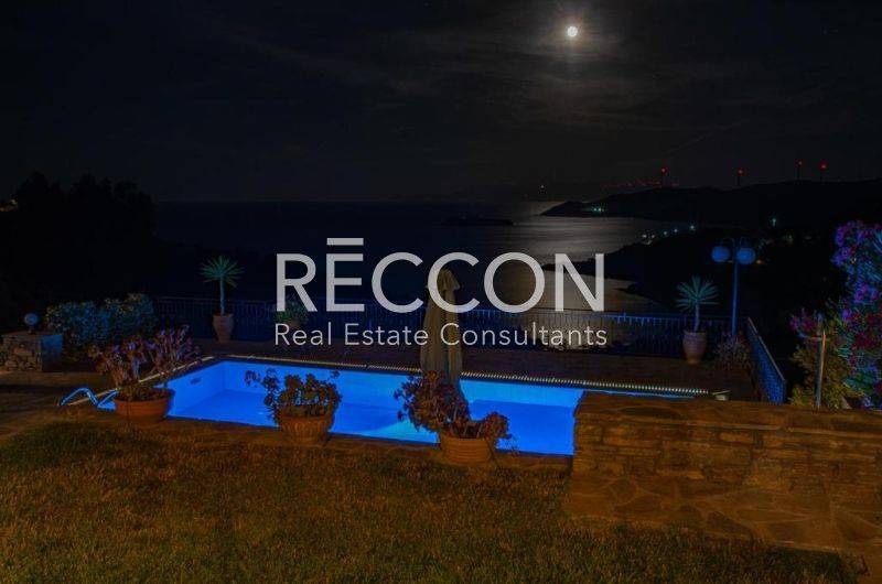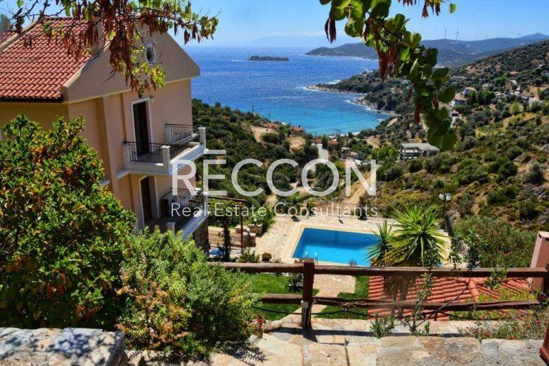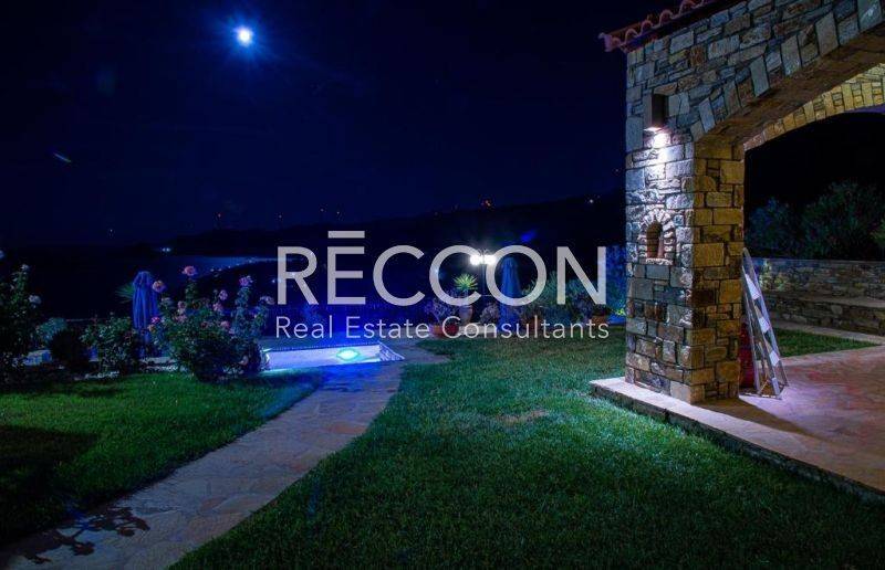 Property Code: 3597 - Dystos Klimaki FOR SALE Amazing furnished luxurious detached house on 5 levels with a total area of 445.00 sq.m. on a plot of 4100 sq.m. With unlimited sea and mountain views. Built with excellent aesthetics, it consists of 2 maisonettes, the lower one has 2 levels and has 3 bedrooms, 1 living room, 1 kitchen, 4 bathrooms and 1 WC. The upper one has 2 levels plus the attic and has 3 bedrooms, 1 living room, 1 kitchen, 2 bathrooms, 1 WC and laundry room. With a beautifully landscaped garden that has an infinity pool of 40 sq.m. and a stone covered barbecue. It was built in 2010 and has individual heating - electric, aluminum frames, tiled floors, security door, built-in wardrobes, parking for 10 cars, 40 sq m storage rooms, fireplace, A/C, heating per level, alarm, electrical appliances, awnings, screens, double glazing, solar water heater, entrance stairs, tiled roof, satellite antenna, internal staircase. There is a radiator installation and a well to install an elevator. Distance from the sea 500 meters, distance from the village 1500 meters. - Price: €1,050,000