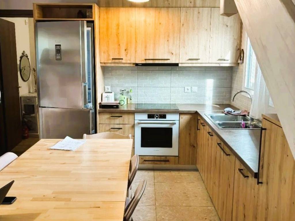For sale: prefabricated single-family home by Kofinas with warranty, built in 2021, with a total area of 95 sq.m. on a 264 sq.m. plot, located in Porto Rafti. The house is spread over two levels (ground floor and first floor) and belongs to energy class A, offering high energy efficiency and heating cost savings. The ground floor features an open-plan kitchen, living room, and dining area, while the first floor includes 3 spacious bedrooms and 1 full bathroom. The property also includes a 35 sq.m. storage room, parking space, and a 100 sq.m. garden for relaxation and outdoor activities. Comfort and security are ensured with aluminum frames with double-glazed windows and screens, a security door, alarm system, and surveillance cameras. Heating is provided through underfloor heating with a heat pump, and there is a boiler for hot water. The home is in an excellent location, just 1 km from the beach and close to the local market, combining comfortable daily living with easy access to amenities and leisure.