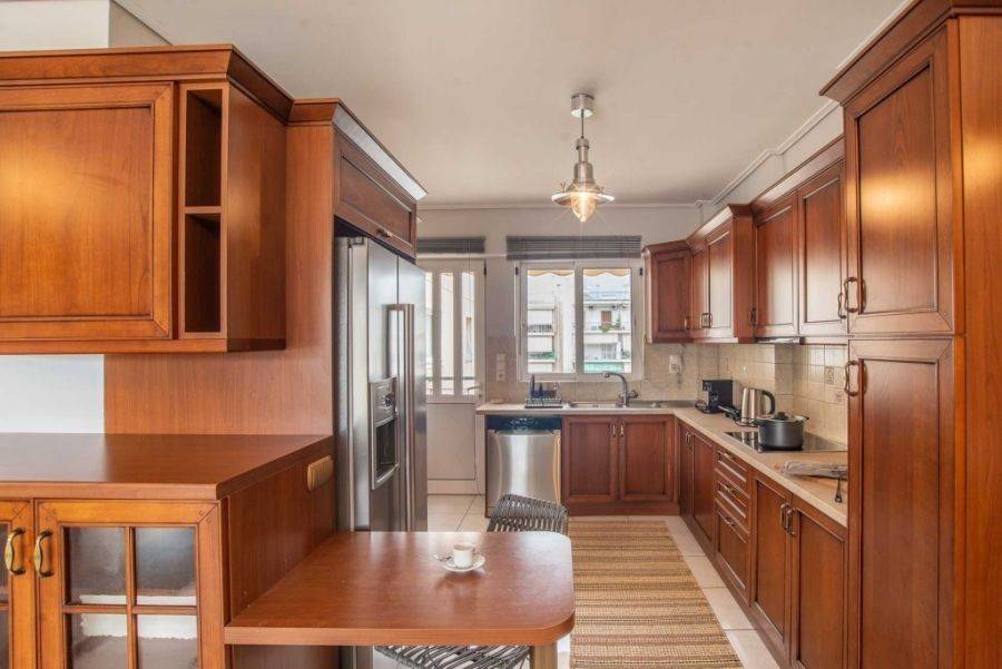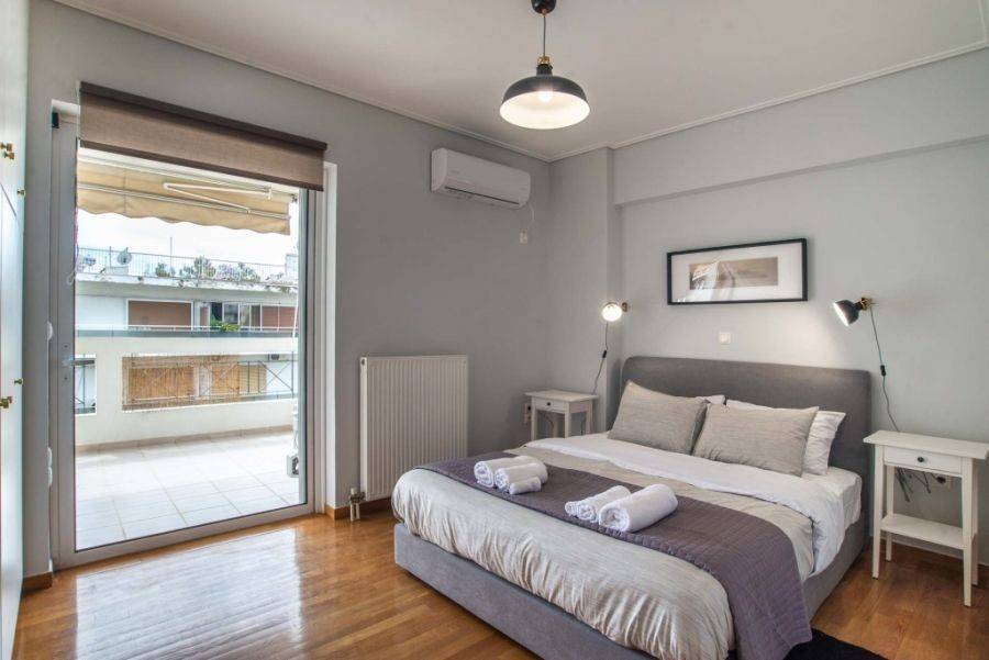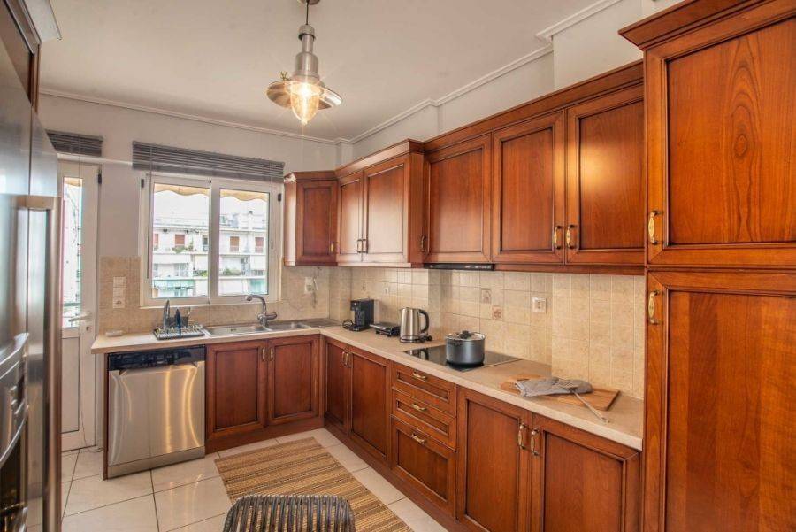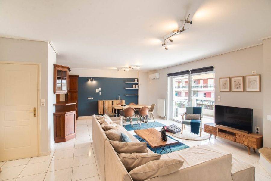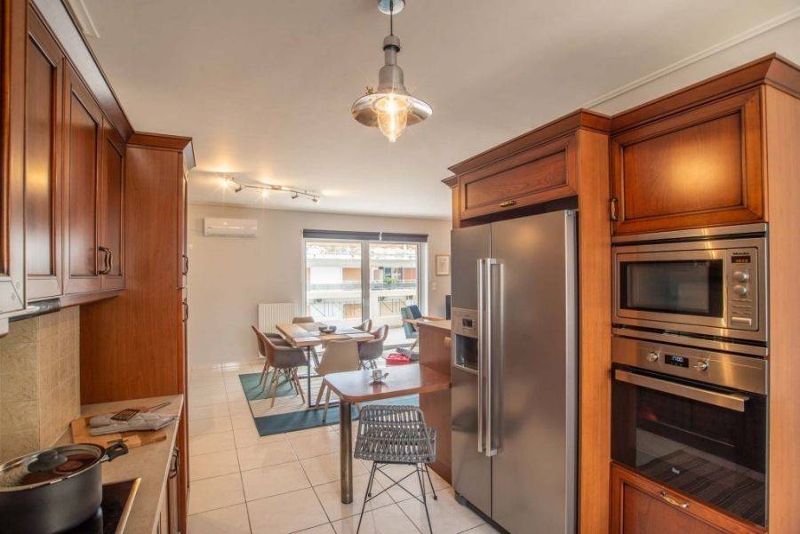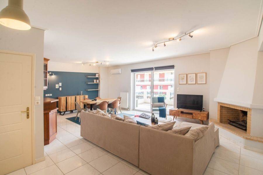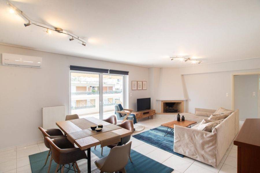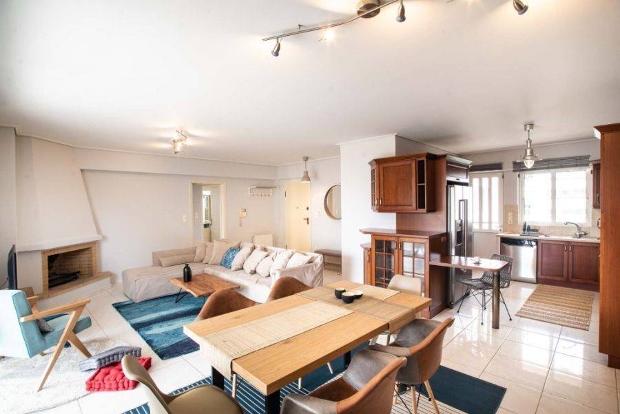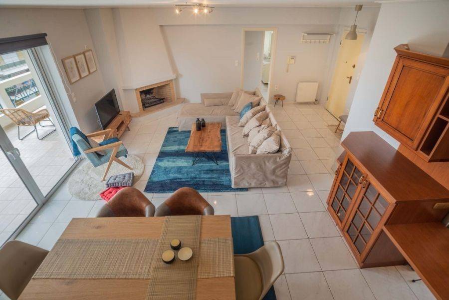Alimos, Apartment For Rent, 120 sq.m., Property Status: Amazing, Floor: 4th, 1 Level(s), 3 Bedrooms 1 Kitchen(s), 2 Bathroom(s), Heating: Autonomous - Petrol, View: Mountain View + Sea view, Building Year: 2002, Energy Certificate: A, 1 parking(s), Floor type: Wooden floors + Tiles, Type of doors: Aluminum, Features: Elevator, Security door, Security alarm, CCTV, Fireplace, Internet Line, Double Glazed Windows, Window Screens, Balcony Cover, Balconies, Furnished, Luxury, Airy, Bright, AirConditioning, Solar water system, Painted, Short Term Lease, Distance from: Seaside (m): 500, Price: 1.680€. Yestayhomes, Tel: 6986749007