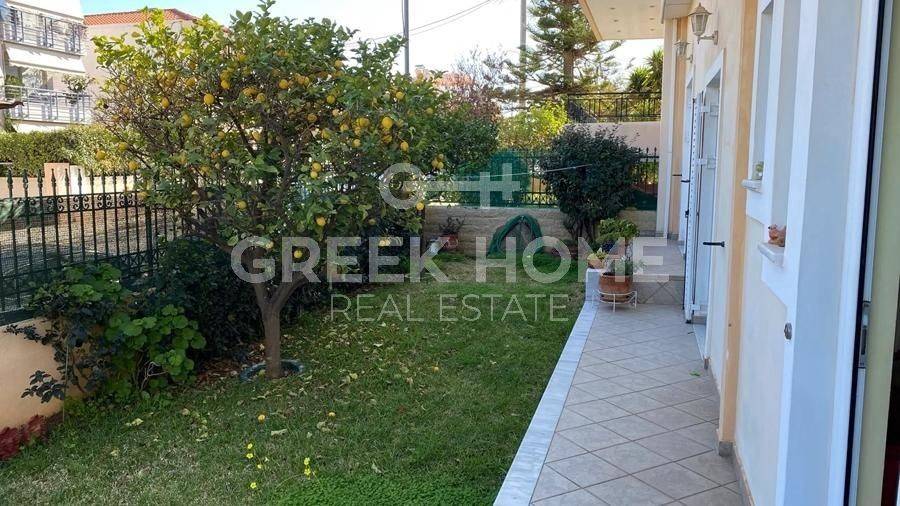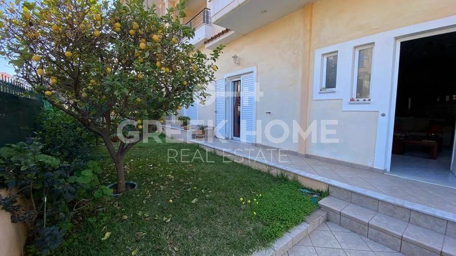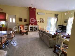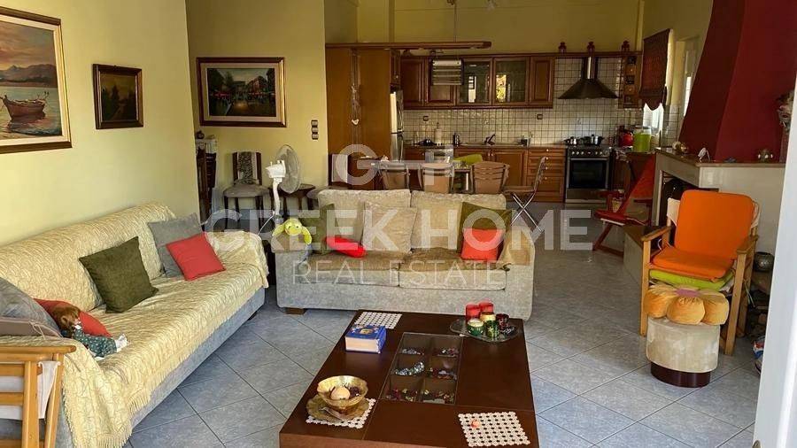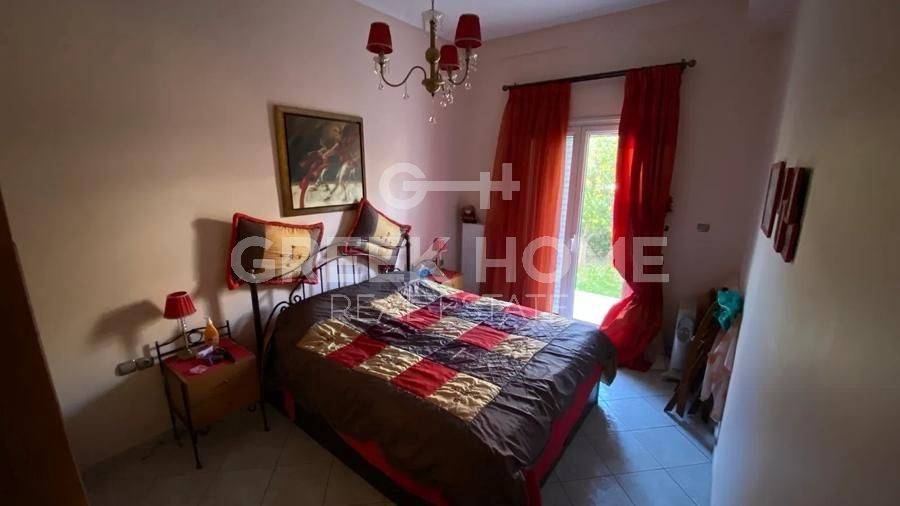 Nea Makri - Apartment 113sqm plot 311sqm, bedrooms 3, raised ground floor, very good condition, year built 2000, energy class D, living room, hall, kitchen, bathroom, wc, heating type: autonomous (oil), quiet, dual aspect apartment, luminous, corner, frontage, storage space, solar heater, fireplace, balconies, large balconies, garden, built in appliances, aluminum frames, double glazed windows, door screen, ceramic tiles floors, without common charges, night electricity discount rate, luxurious, pets allowed, special offer.