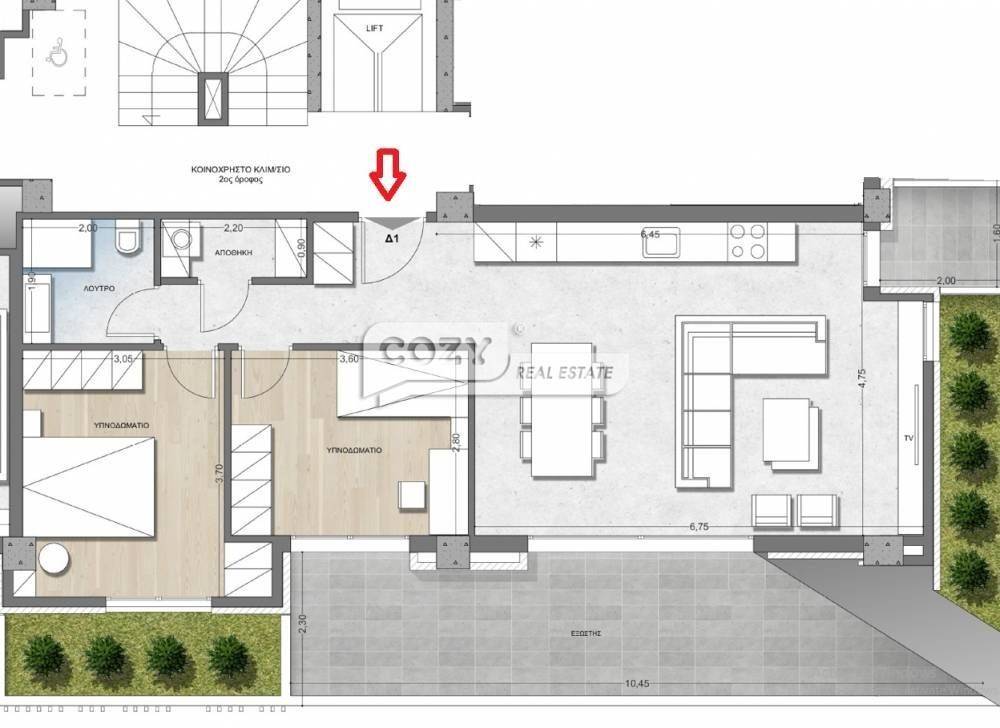 Thessaloniki, Thermi: In a complex of 2 independent buildings, For sale under construction, corner apartment 92,04 sq m. on the 2nd floor. It consists of a living room with kitchen,2 bedrooms, a bathroom and an internal storage room. Underfloor heating with individual natural gas. Energy class A+. It has parking space and a storage room of 3,80 sq m in the attic.