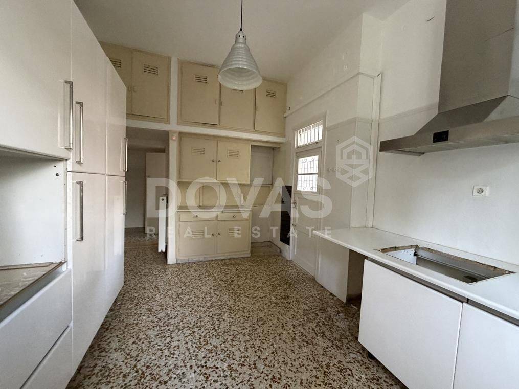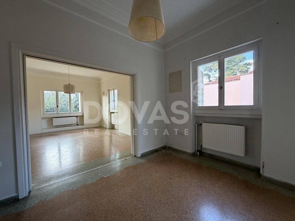Kifissia - Apartment 159sqm plot 1000sqm, bedrooms 3, levels 1, needs renovation, year built 1960, energy class E, living room, hall, kitchen, bathroom, wc, heating type: autonomous, parking covered, dual aspect apartment, luminous, unobstructed view view, frontage, storage space, fireplace, balconies, garden, mosaic floors, office, pets allowed, residential zone.