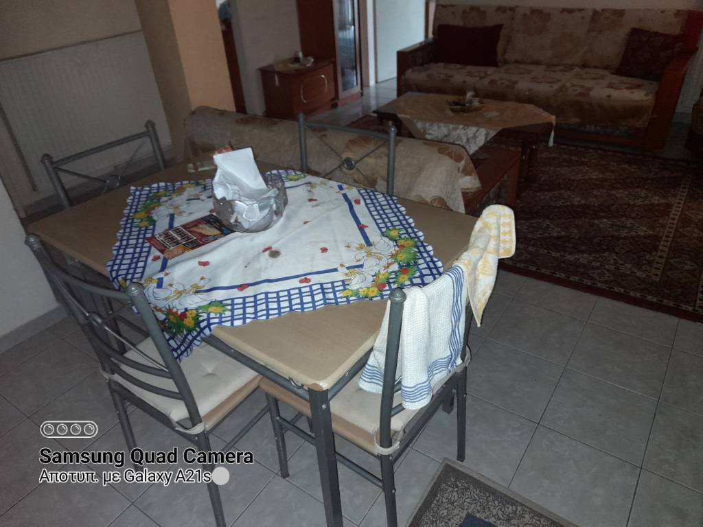 Άνετο δυάρι στις Συκιές,χαμηλά κοντά στον Μαύρο Γάτο. 2ος όροφος,τελευταίος. Γωνιακό,δωτεινό,διαμπερές με ατομικό φυσικό αέριο.τέντες και κλιματιστικό. Πλήρως επιπλωμένο αν το επιθυμεί κανείς. Θέλει μια μικρή επέμβαση στα λούκια της ταράτσας πάνω από το ένα δωμάτιο. Έχει ανακαινιστεί αλλά παραμένει ακατοίκητο πάνω από 12 χρόνια. Σε καλό σημείο,διπλα σε σχολεία,αστικά,σούπερ μάρκετ,αγορά κλπ. Υπόδειξη με ταυτότητα.