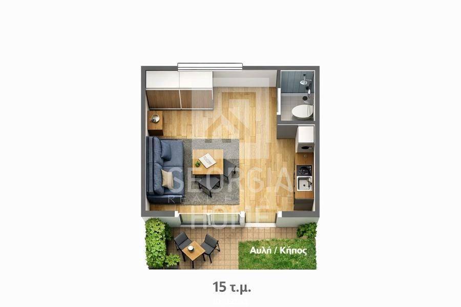 Patra, Psilalonia - Studio 15sqm bedroom, ground floor, newly built, year built 2026, energy class A++, kitchen, bathroom, heating type: autonomous, air condition, quiet, internal plot, external thermal insulation, garden, aluminum frames, double glazed windows, ceramic tiles floors, secure door, residential zone, investment property, special offer.