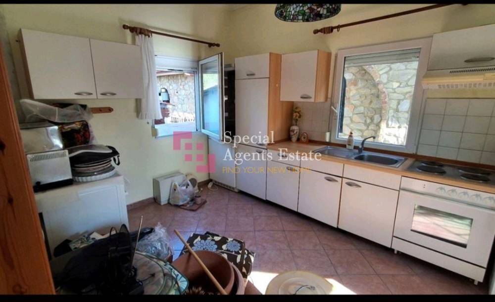 For sale, Zagliveri area, Sarakina village, single-family house of 120 sq.m., gross and 100 sq.m. 50sqm are on the upper floor and 50sqm on the lower floor. It is built in 450 square meters. Upstairs has two bedrooms and a bathroom. Downstairs there is a kitchen and next to it a smaller bathroom. And spacious living room. Heating individual radiator with oil. Which heats water as well as an electric water heater and also has an air conditioner. There is also a fireplace. For more insulation, it has adjacent windows, the upper floor has parquet and the lower floor is tiled. The foundations started in 1997 and in 1999 the construction was completed.