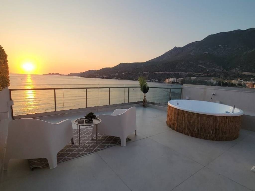 Apartment – Fully Furnished with Jacuzzi, Directly on the Sea Newly renovated apartment, 1 bedroom, 1 bathroom, fully furnished, with a rooftop and Jacuzzi. Located directly on the sea, offering stunning views. Price: €800/month (until end of April) Ideal for comfortable living, close to all shops and daily amenities.