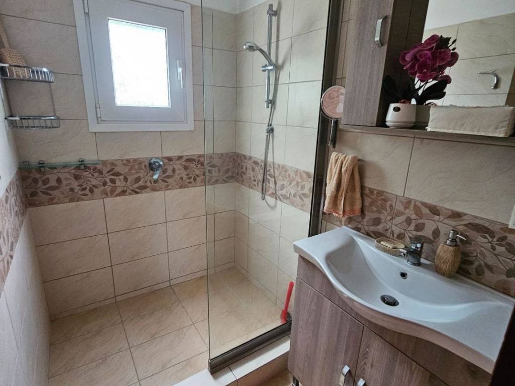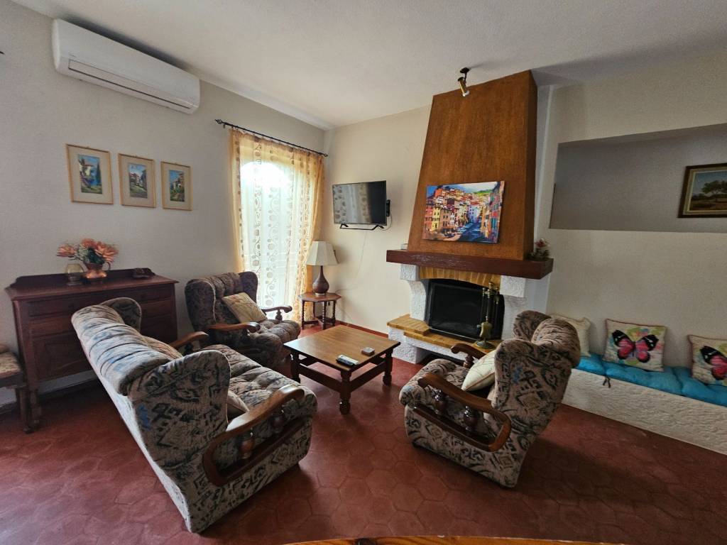 GASTOURI A beautiful property in a quiet, secluded area with fantastic view. The property is 256m2 in toal, set in a plot of 4,290m2 with a 21m2 swimming pool. The upper level 130m2 corises of a itchen, lounge with fire place and a large veranda with lovely view, three bedrooms, two bathrooms and a laundry room / store room. On the lower level there is one apartment with kitchen / lounge, 2 bedrooms and bathroom and one apartment with kitchen / living area, one bedroom and bathroom. These two apartments can be used as one or two separate apartments for rental purposes. The pool has a lovely paved patio area , and the laand has 41 olive trees and numerous fruit trees.