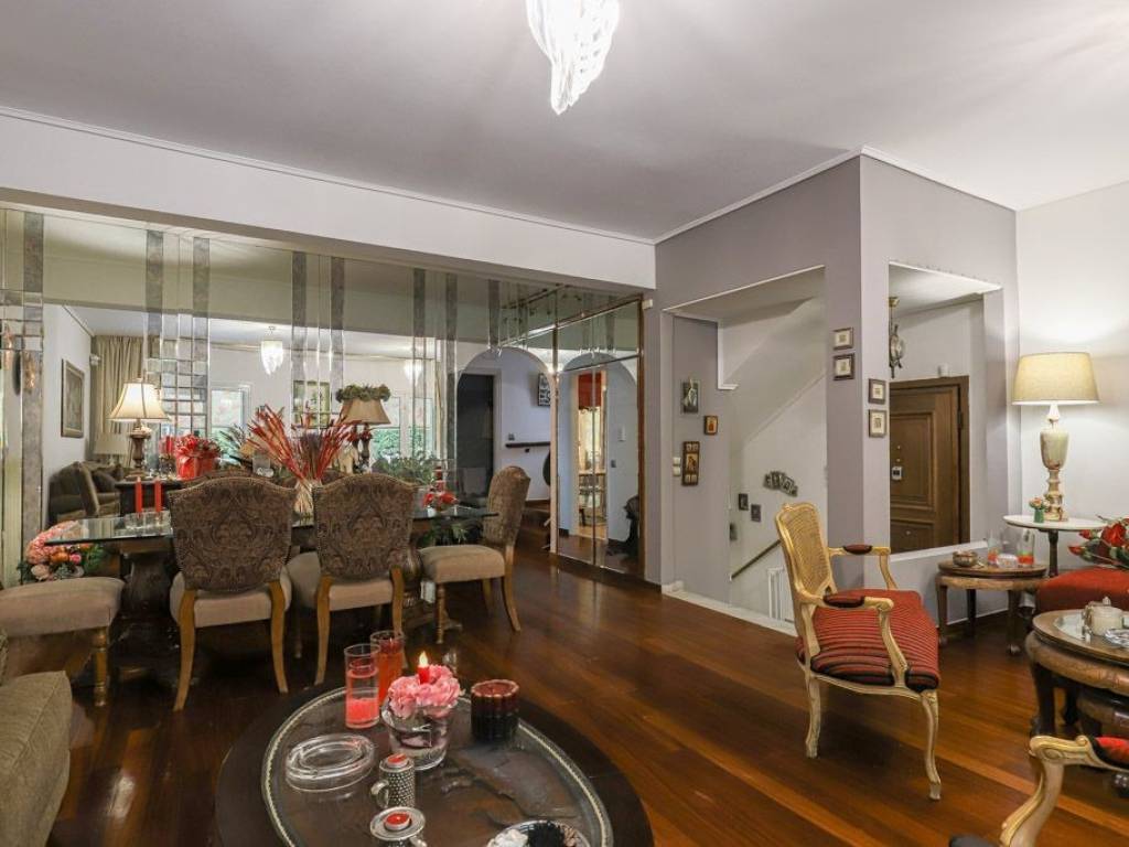 Functional maisonette of three levels at a key point with access both to the center of Kifissia Kefallari, Potiteia and Nea Erythrea. The groundfloor includes the open plan area of the living and dining room, the fully renovated kitchen, a bathroom and two balconies. Going up on the first floor on the left we find the master bedroom with its en suite bathroom, and on the right, there are two spacious, bright bedrooms, that share a bathroom. Going down to the semi-basement we find the playroom configured in a cozy livingroom with kitchenette, energy fireplace and exit to a small patio. On the same level there are auxiliary and storage places, one more bathroom and a closed garage. A nice, petfriendly residence, ideal for a two children family. Strofyli is an area located at one of the greenest areas of Kifissia, having the most exquisite residences in the wider region. Full of perennial plants also offers direct acces to downtown Kifissia and the metro station as well as the developed market of Nea Erythrea. It also has great access to the road network of the nothern suburbs.