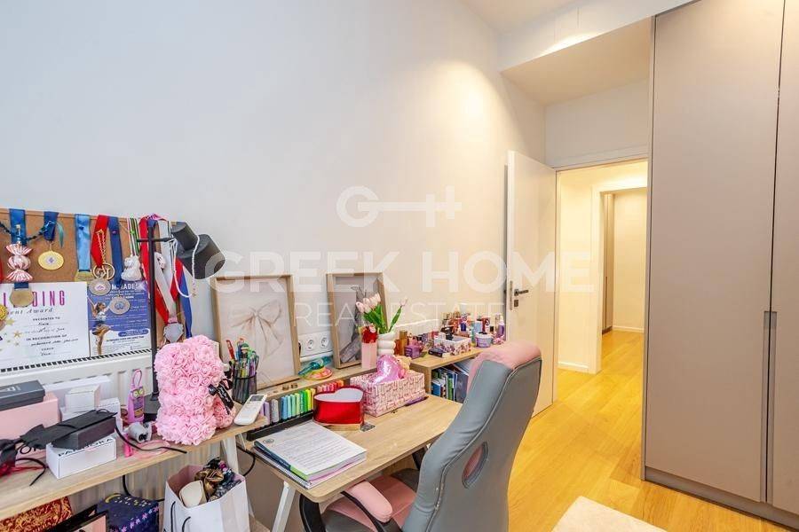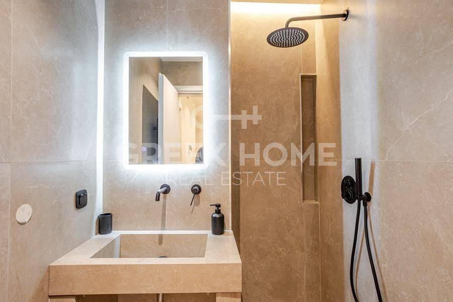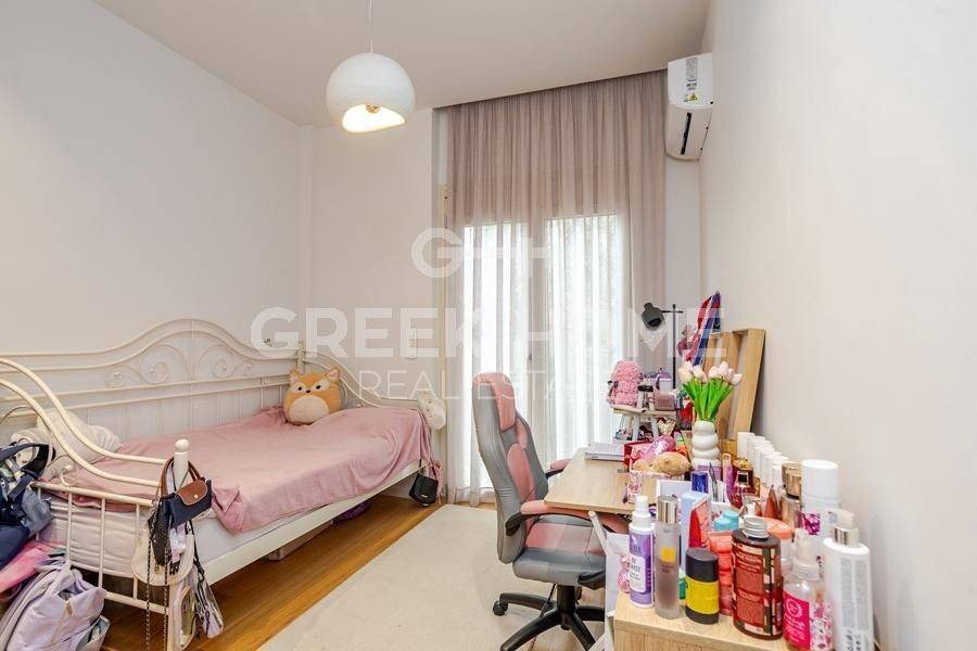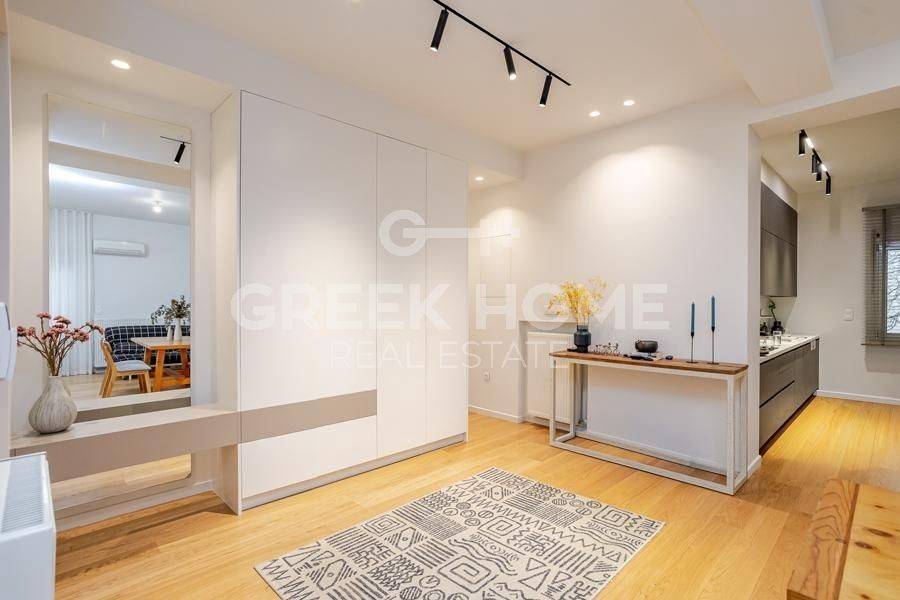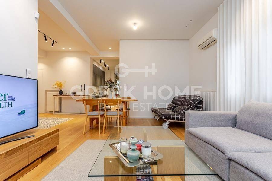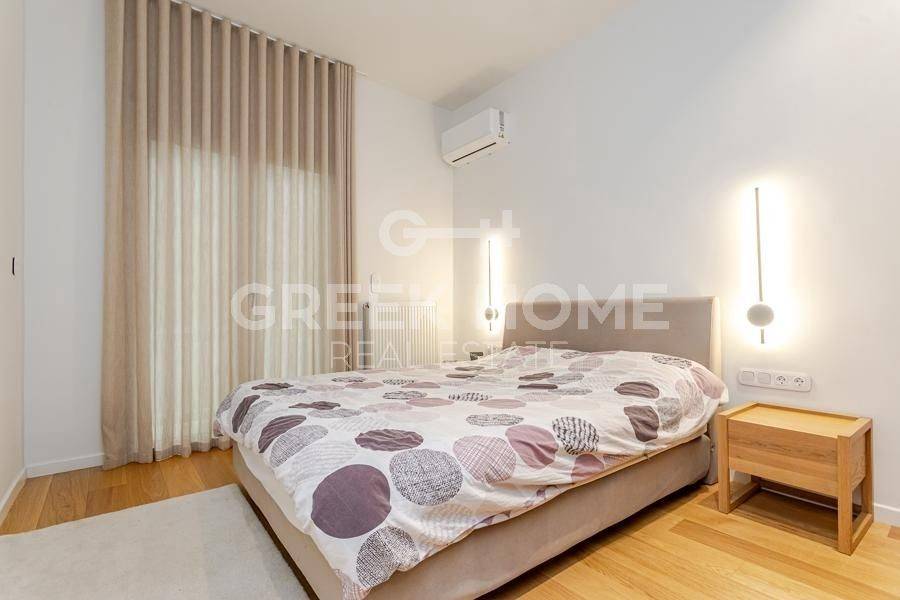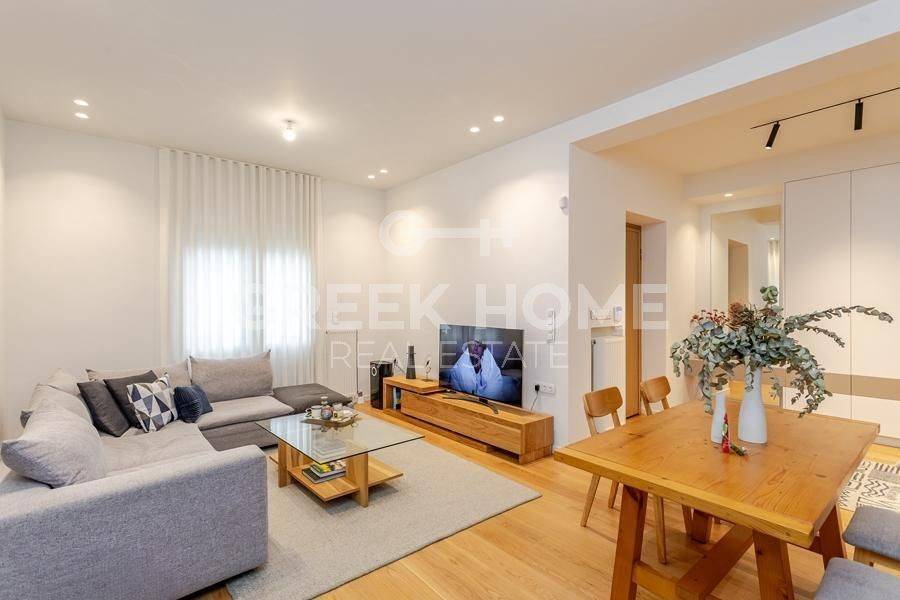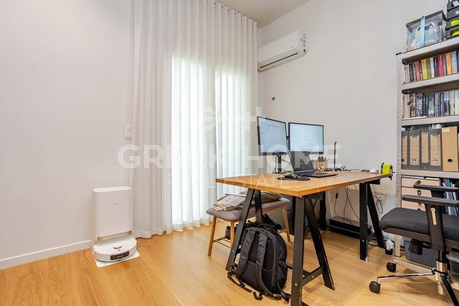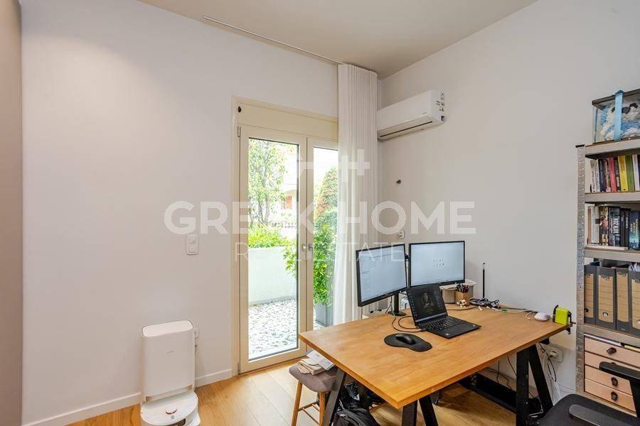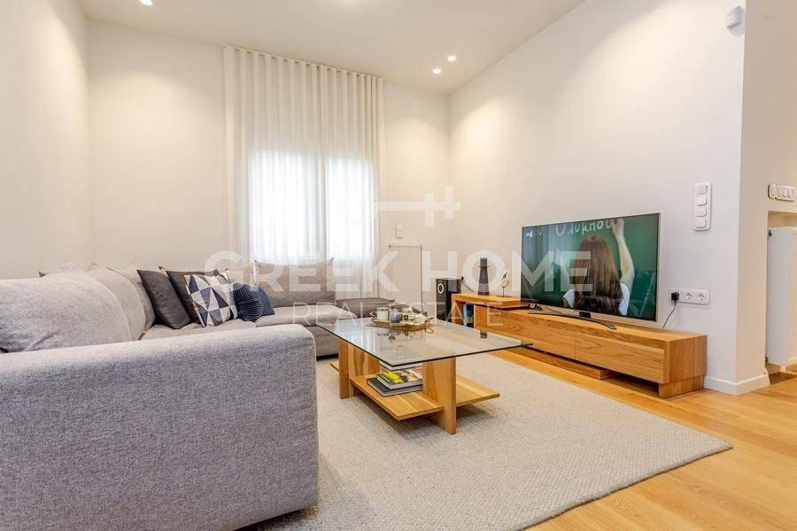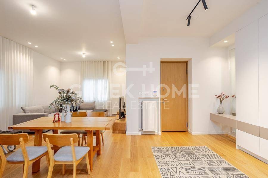 Kifissia, Nea Kifisia - Apartment 128sqm plot 500sqm, bedrooms 3, ground floor, fully renovated, year built 1975, renovation year 2024, energy class D, living room, kitchen, bathroom, wc, heating type: autonomous (natural gas), air condition, parking open space, quiet, luminous, corner, frontage, painted, electric roller shutters, storage space, boiler, balconies, loft storage, garden, aluminum frames, double glazed windows, door screen, wood & tile floors, three phase electricity, night electricity discount rate, secure door, alarm, surveillance cameras, video doorbell, ev charger, internet, pets allowed, close to super market (up to 500m), close to market (up to 500m), close to bus stop (up to 100m).