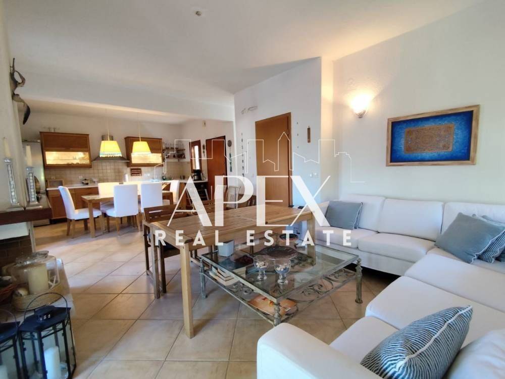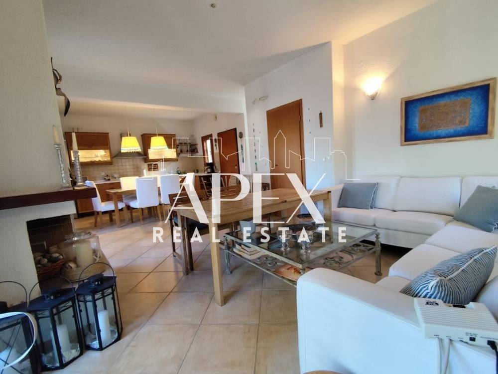 Golden Visa approved. Luxuriously built maisonette with unlimited sea view 190sq.m. net, for sale in the area of Fourka. It is spread over three levels and an attic. It consists of three spacious bedrooms, a bright open plan kitchen with living room, two bathrooms and a WC. The first level (approximately 85sq.m.) is autonomous and can be converted into a ground floor apartment. It is furnished, has electrical appliances, a fireplace, a private garden, large verandas and two parking spaces. It is situated in an ideal location close to the beach, beach bars, and supermarket.