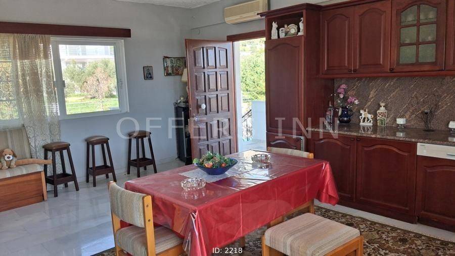 Megara, Kineta - Apartment 70sqm plot 1000sqm, fully furnished, bedrooms 2, levels 1, 1st, renovated, year built 1980, energy class C, living room, hall, kitchen, bathroom, heating type: autonomous (electricity), air condition, parking, quiet, dual aspect apartment, luminous, unobstructed view, frontage, painted, large balconies, garden, aluminum frames, marble & tile floors, without common charges, residential zone, close to sea (up to 1000m).