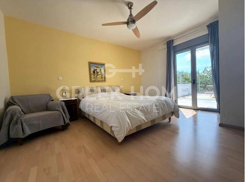 Pallini (Attica - Eastern Suburbs), Panorama - Detached House 277sqm plot 377sqm, bedrooms 4, levels 4, ground floor - 1st - 2nd - attic, year built 2011, energy class C, living room, hall, 2 kitchens, bathroom, wc, heating type: autonomous (oil), air condition, parking open space, quiet, dual aspect apartment, luminous, mountain view, painted, drop ceiling, electric roller shutters, storage space, solar heater, external thermal insulation, fireplace, balconies, large balconies, tents, elevator, loft storage, garden, private terrace, built in appliances, thermal shut-off frames, double glazed windows, door screen, wood & tile floors, separate kitchen, office, without common charges, secure door, alarm, surveillance cameras, video doorbell, luxurious, internal staircase, barbeque, playroom, cloakroom, guest house, internet, pets allowed.