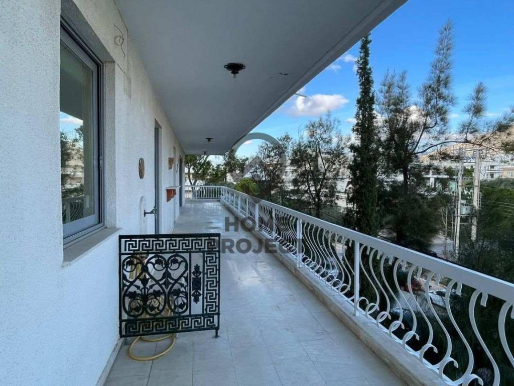 GLYFADA (Aixoni) Apartment 150 sq.m., 3rd floor in a well-preserved four-storey apartment building from 1977. The property consists of a comfortable reception area that gives a nice terrace with a view, an independent kitchen, 2 bedrooms, an office and 2 bathrooms. In addition, it has central heating with natural gas supply, security doors, solar water heater, loft/storage space within the apartment and A/C. It is in an excellent location, close to the market and transport. (Ref 4335)