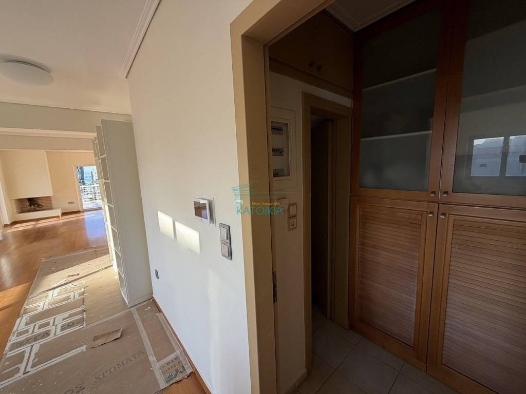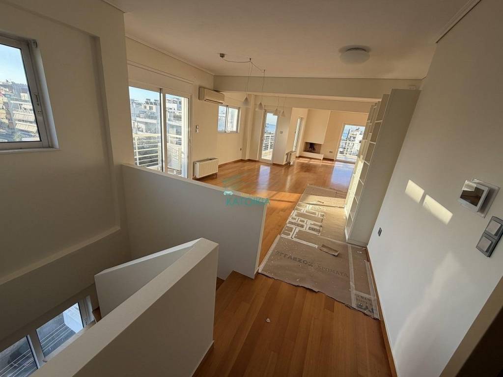 Kato Kalamaki, with sea view penthouse maisonette in a high-standard apartment building with a total area of 220 sq.m. The property consists of a spacious living room with fireplace connected to the dining room, kitchen, 4 bedrooms, 1 of which is a master bedroom, storage space, separate walk-in closet room, storage room, and 2 parking spaces. It has 2 security doors on each level, wooden floors, aluminum window frames with double energy-efficient glazing, screens, solar water heater, large terraces, autonomous oil heating, air conditioning, alarm system. Just 200m from the beach and 100m from the central market. Price 3.000€, code 58589