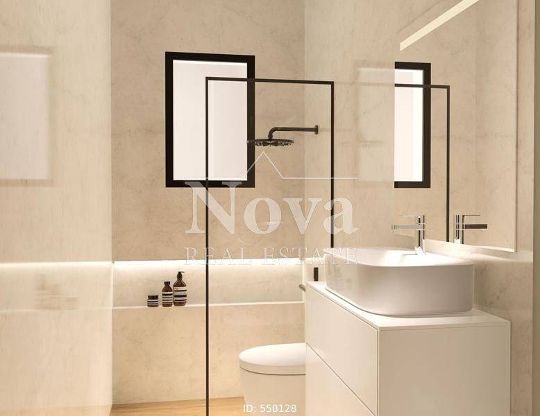 Nea Smyrni - Apartment 110sqm bedrooms 3, 4th, under construction, year built 2025, energy class A+, living room, kitchen, 2 bathrooms, wc, heating type: autonomous (natural gas), parking, quiet, exposure, luminous, unobstructed view, facade, painted, storage space, solar heater, external thermal insulation, fire place, balconies, large balconies, elevator, thermal shut-off frames, double glaze windows, door screen, wood & tile floors, three phase electricity, secure door, alarm, video doorbell, south-eastern orientation.