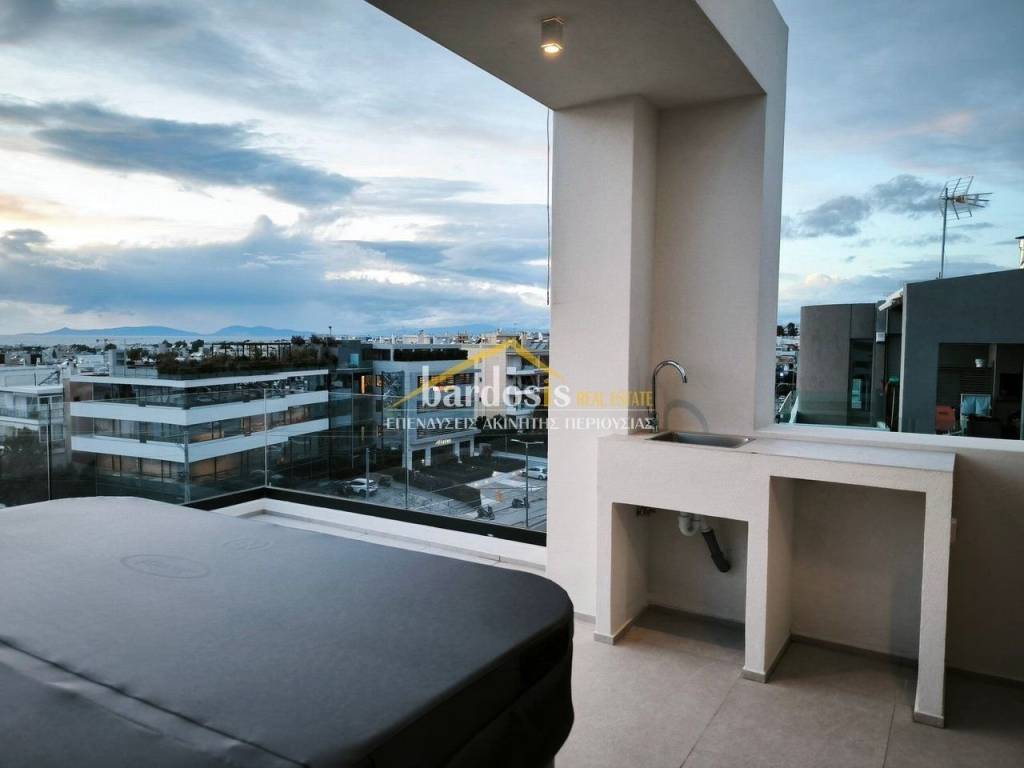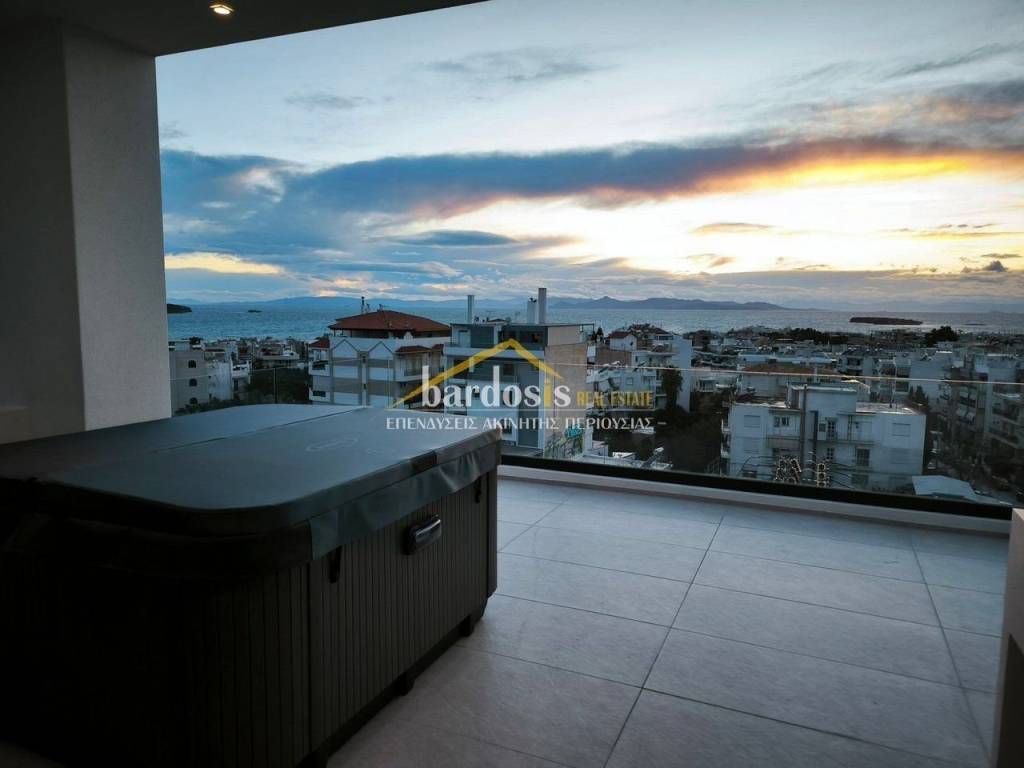 VOULA, Countryside: Maisonette 160sq.m, 3rd - 4th floor, newly built in 2026, luxurious, airy, frontage, with mountain and sea views, in a luxurious complex on a 900sq.m plot, on the 3rd floor: large living and dining area with oak floors, energy fireplace, open kitchen with built-in electrical appliances, wc, 2 bedrooms with oak floors and built-in wardrobes, 1 bathroom and on the 4th floor: 1 master bedroom with oak floors, dressing room, 1 bathroom and an additional spacious living area with oak floors. It also features: internal oak staircase with crystal security railings, security door, video intercom, alarm, structured cabling, autonomous underfloor heating with electricity, air conditioning, solar water heater, photovoltaic, aluminum frames, double glazing, screens, thermal facade, large verandas, electric awnings, basement storage of 14 sq.m., 2 closed parking spaces with pre-installation of an EV charger, exclusive use of a terrace with a 4-person Jacuzzi, built-in bench for a mini bar, sink and space for a refrigerator. Pets are allowed. (Code: M-16998) Jacuzzi, Parking, WC, individual heating underfloor heating, porch, floors (Floors) oak, double glazing, energy class A+, Allowed, staircase, solar, view, situation (Status) newly, air conditioning, kitchen (Kitchen) open - Single, luxury residence, security door, frontage, sieves, alert, Tents, bright, use of roof