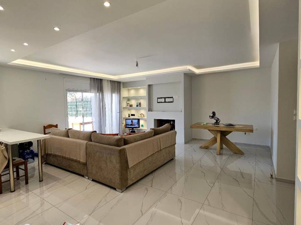 Nea Makri For sale bright and dual-aspect ground floor apartment of 83 sq.m., built in 2004, ideal for permanent residence, holiday home or investment. It consists of 2 bedrooms with large mirrored sliding wardrobes, 1 luxury bathroom with shower cabin, 1 WC, spacious kitchen with provision for dishwasher and washing machine, and a comfortable living room with energy-efficient fireplace. The property features autonomous oil heating (central installation), solar water heater, air conditioning, night electricity tariff, aluminum frames with double glazing, window screens, tiled floors and security door. Spotlights and hidden lighting in various colors create a modern atmosphere. The storage room is located on the same floor, right next to the apartment entrance, with no stairs required. There is no designated parking space; however, there is ample space for easy parking. Located in a quiet neighborhood close to the sea, schools, square and market, offering mountain and green views with east-southeast orientation. (The address is approximate) Price: 220,000€ Code: HΠ0351Π For more information: Paraskevi Christou +30 6907107919 – Estate4All