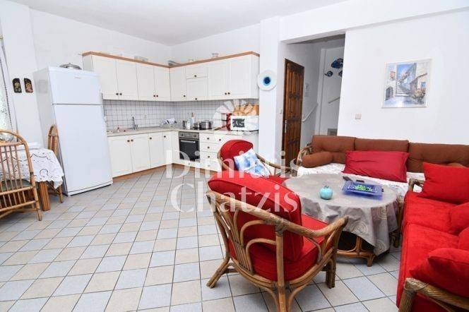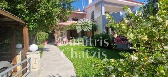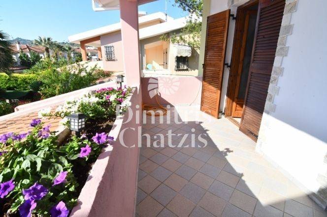 In Pefkohori, just 90 meters from the sea, is this corner villa-maisonette for sale, it is 125 sq m. It consists of a single space of 40 sq m on the ground floor (semi-basement) with a kitchen, bathroom and storage room that can be a separate apartment. The ground floor is 40 sq m and consists of the living room, the kitchen and a wc. The first floor is 37 sq m and consists of two bedrooms, a bathroom and a large balcony. The attic is 10 sq m and is a separate bedroom. The garden is approximately 250 sq m with lawn and many developed ornamental plants. The property has a parking space, solar water heater, east orientation, and is available furnished and equipped. The value of this maisonette is 350,000€.