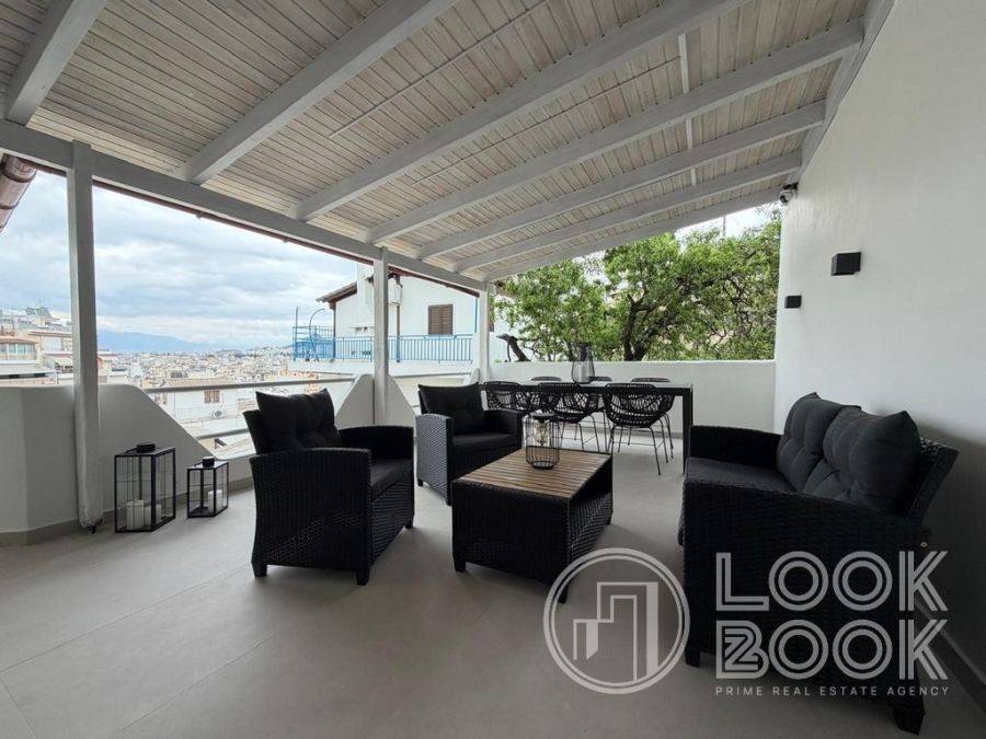 Neos Kosmos, Kynosargous apartment, 65 sq m, fully renovated and furnished 1st floor with total renovation in 2026. It has a bright living room with open-plan kitchen, 2 bedrooms and 1 bathroom. The apartment opens onto a spacious 40 sq m terrace with pergola and beautiful views of Lycabettus, Acropolis and Filopappou. It also has a 4 sq m loft for storage space. It is fully equipped and furnished, with autonomous oil heating, 3 air conditioners, security door, alarm, video intercom and 300 mbps fiber optic connection. It is located in an excellent location, just 5 minutes walk from the Agios Ioannis and Neos Kosmos metro stations, with access by stairs, in a quiet neighborhood of Neos Kosmos. Price: €1,100, Ref. : 57953, Look2Book Tel: 2108940006,6944991499, e-mail: info@look2book.gr, website: www.look2book.gr