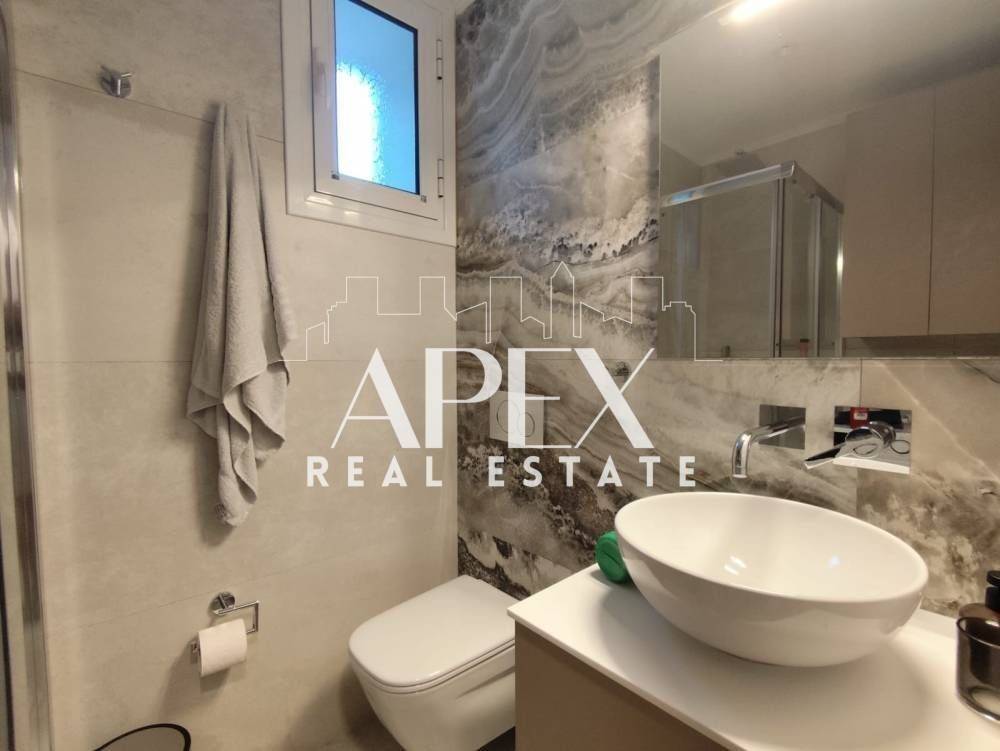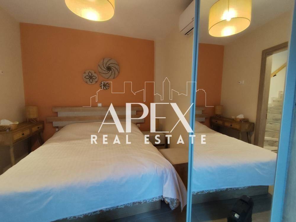 For sale is a luxuriously renovated maisonette, 80 sq m. with an unlimited sea view. It consists of two spacious bedrooms, a bright open plan kitchen with living room, a WC and a bathroom. It is fully furnished, has electrical appliances, air conditioning, garden, a large terrace, storage room, pre-installation for a solar water heater, thermal insulation and double glazing with screens. It is located in an ideal location, close to supermarkets, shops, beach bars and restaurants.